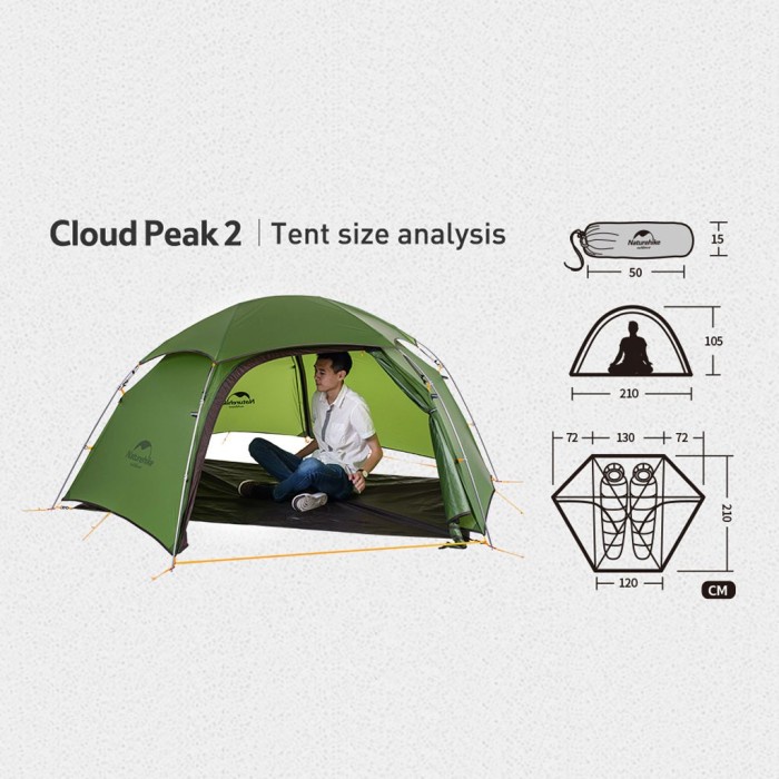 NATUREHIKE NH17K240-Y CLOUD PEAK TENDA CAMPING 2 ORANG 15D 20D