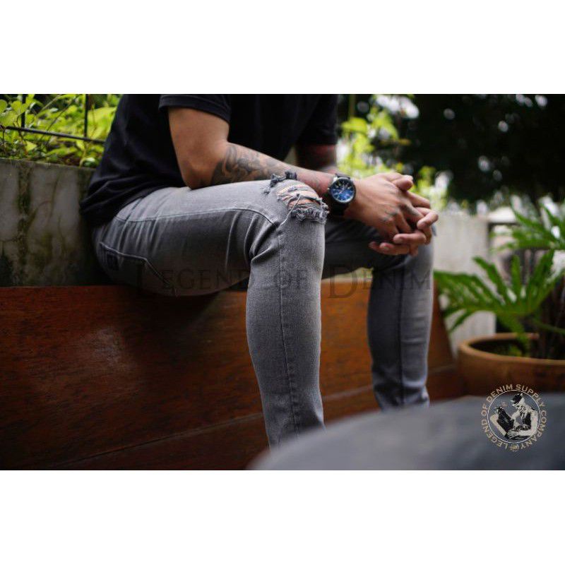 CELANA JEANS PUTIH JEANS HITAM JEANS ABU BIOBLITZ PRIA SOBEK LUTUT RIPPED NON SOBEK