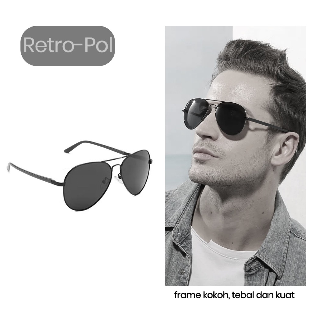 KACAMATA PRIA RETRO POLISI SUNGLASSES PANTAI HITAM KKPRO