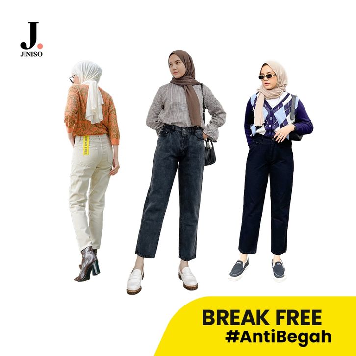 JINISO - CELANA JEANS WANITA BREAK FREE HIGHWAIST MOM JEANS ORIGINAL OFFICIAL STORE