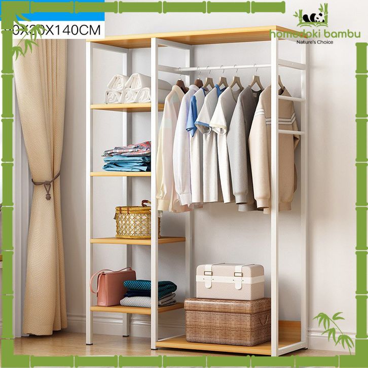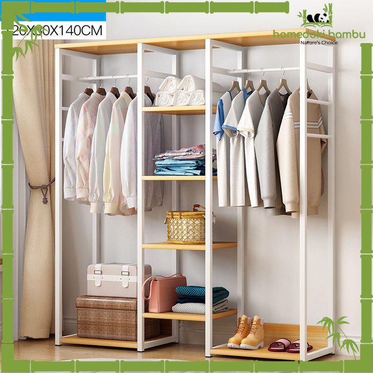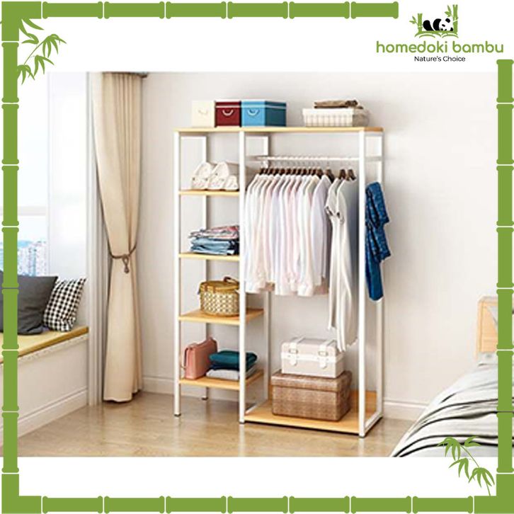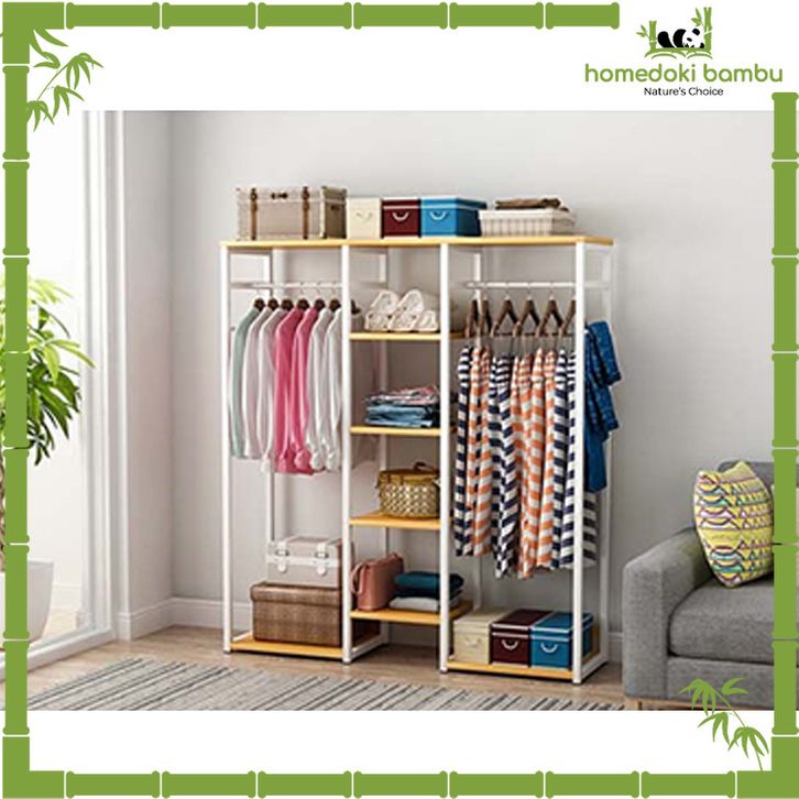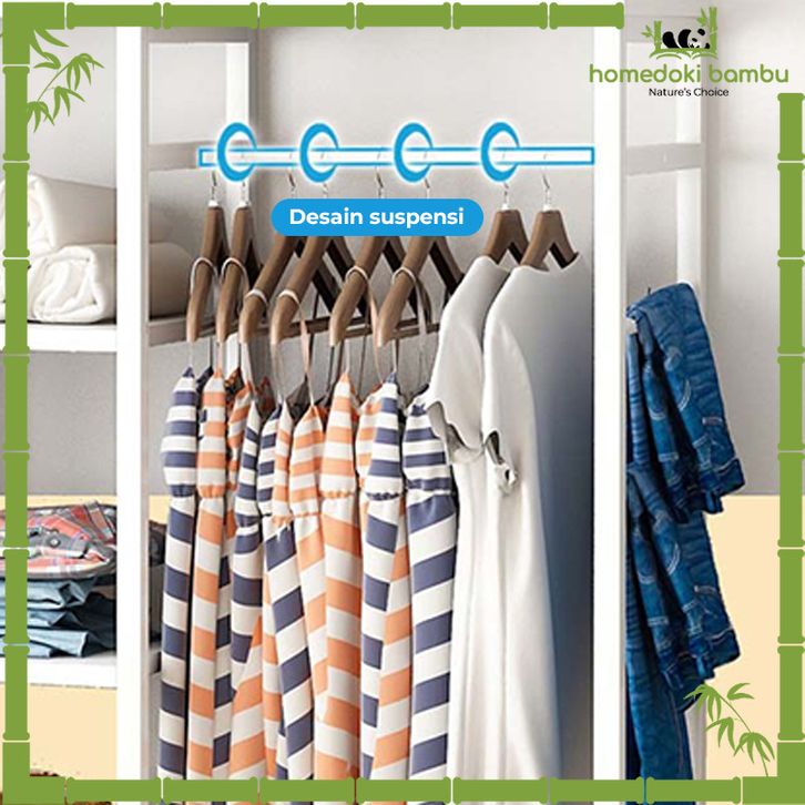 Homedoki Bambu - Rak Gantung Baju Kayu/Rak Gantungan Serbaguna/Rak Gantungan Baju Aesthetic
