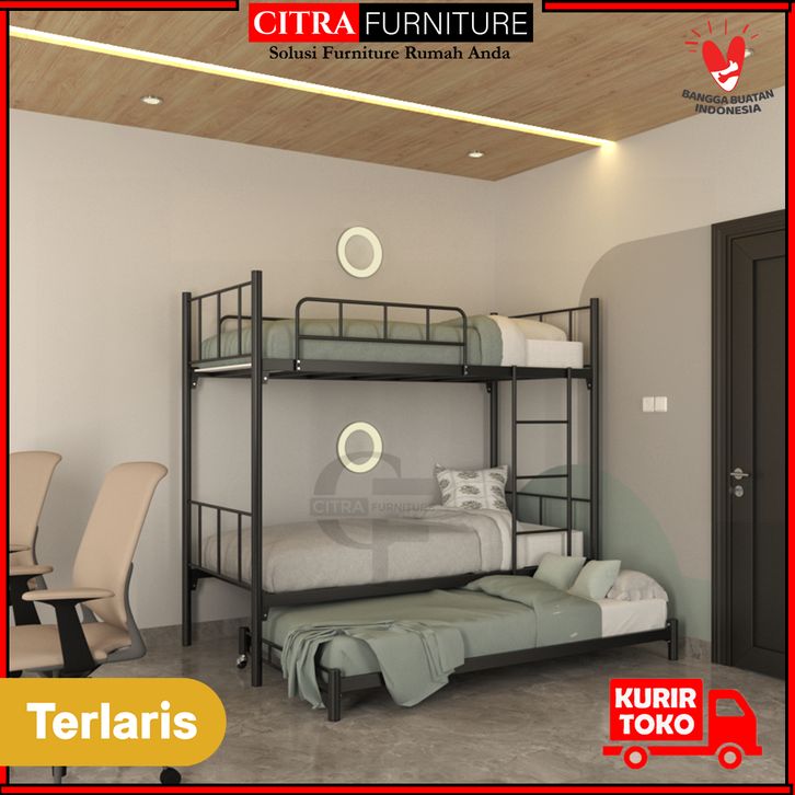 NEW Ranjang Tingkat Besi 3in1 Ranjang Susun Minimalis Kasur Tingkat CTR3 Ranjang Tempat Tidur Ranjang Susun Ranjang Besi
