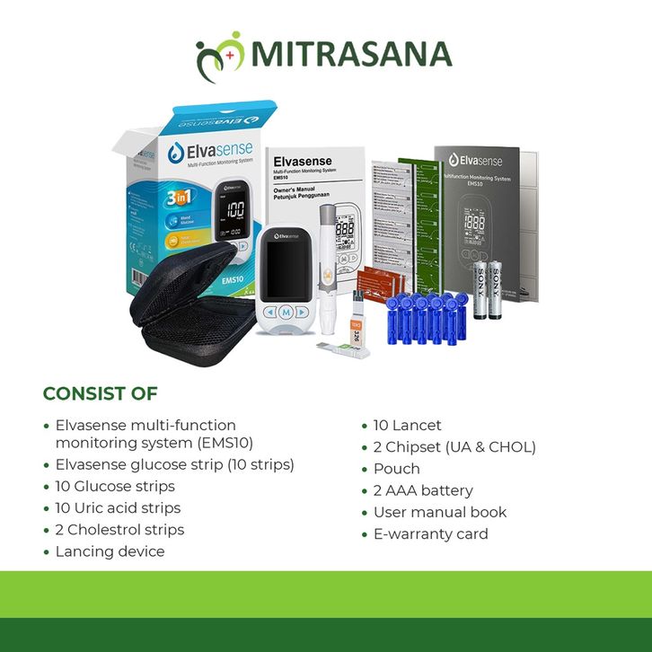 Elvasense MFM 3 in 1 System - Alat Cek 3in1 Elvasense (Gula Darah, Kolesterol & Asam Urat)