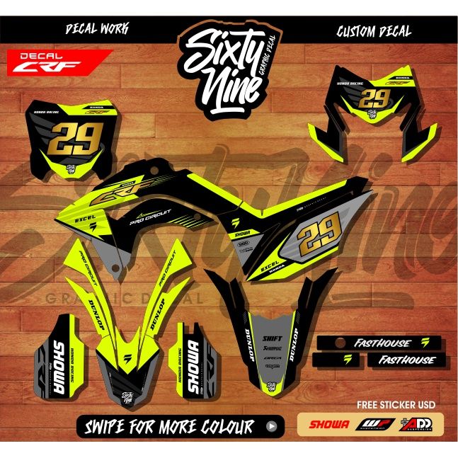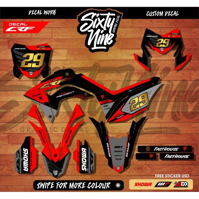 DECAL CRF 150 L FULL BODY SUPER GLOSSY POLA PRESISI DESAIN SIMPEL KEREN BY 69 GRAPHIC KLX WR CRF DOF