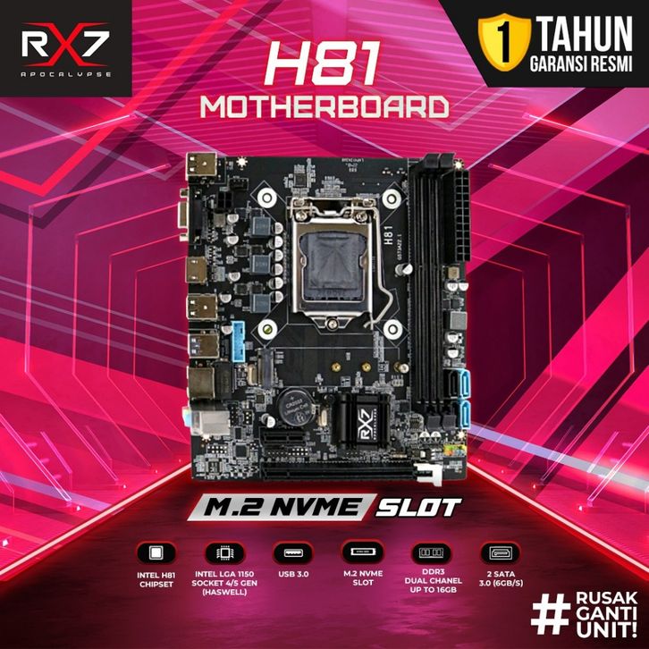 MOTHERBOARD GAMING / MOTHERBOARD ASROCK / MOTHERBOARD H81 / MOTHERBOARD RX7 H81 LGA 1150 DDR3 MAINBOARD H81 SUPPORT NVME
