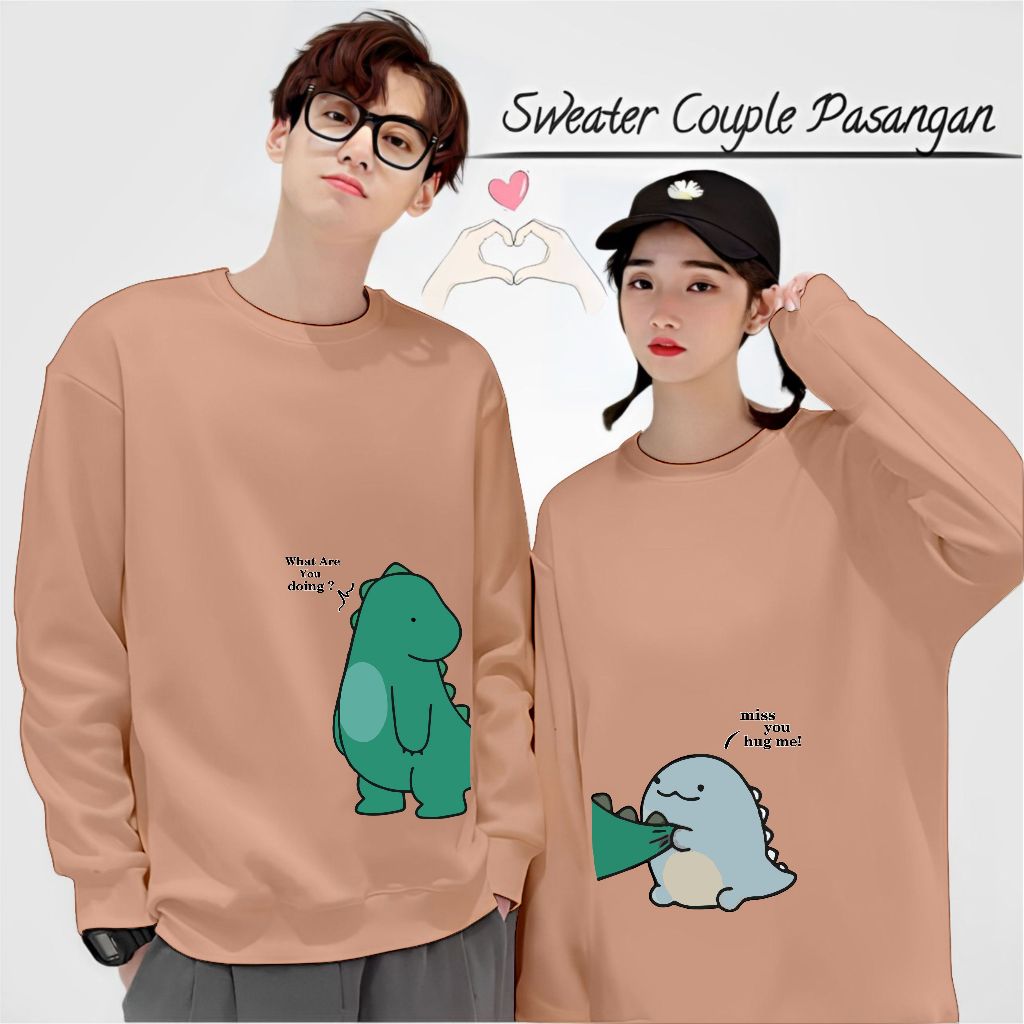 BAJU KAOS COUPLE PASANGAN PACAR DINO LENGAN PANJANG DISTRO MODEL SWEATER TERLARIS VIRAL KEKINIAN
