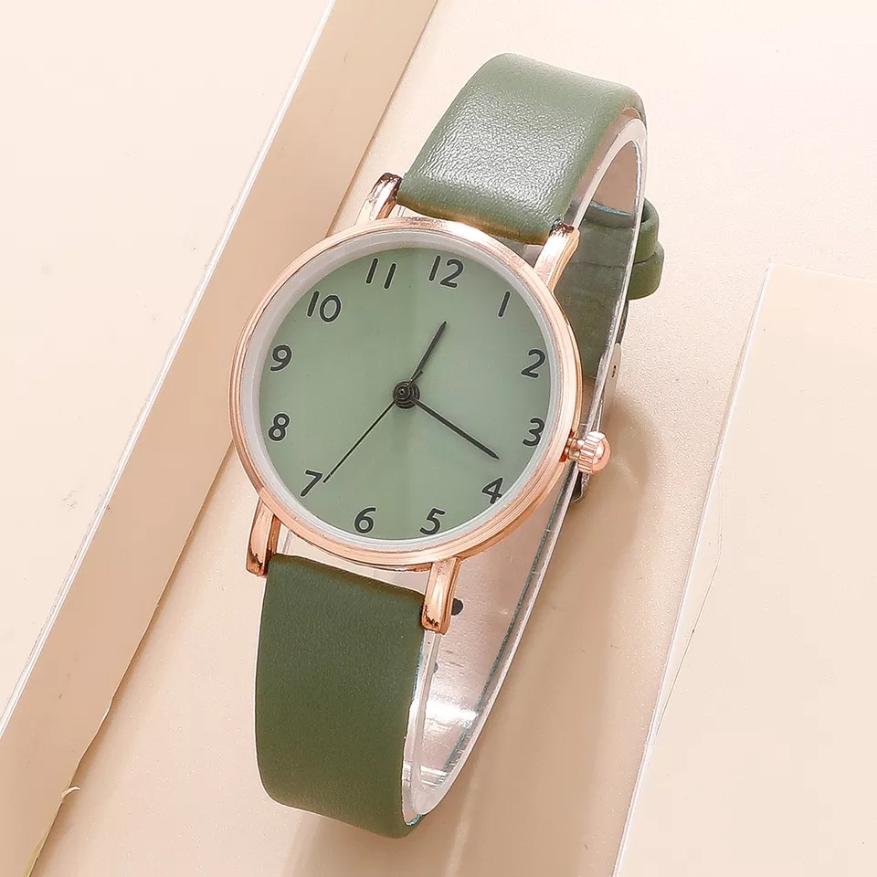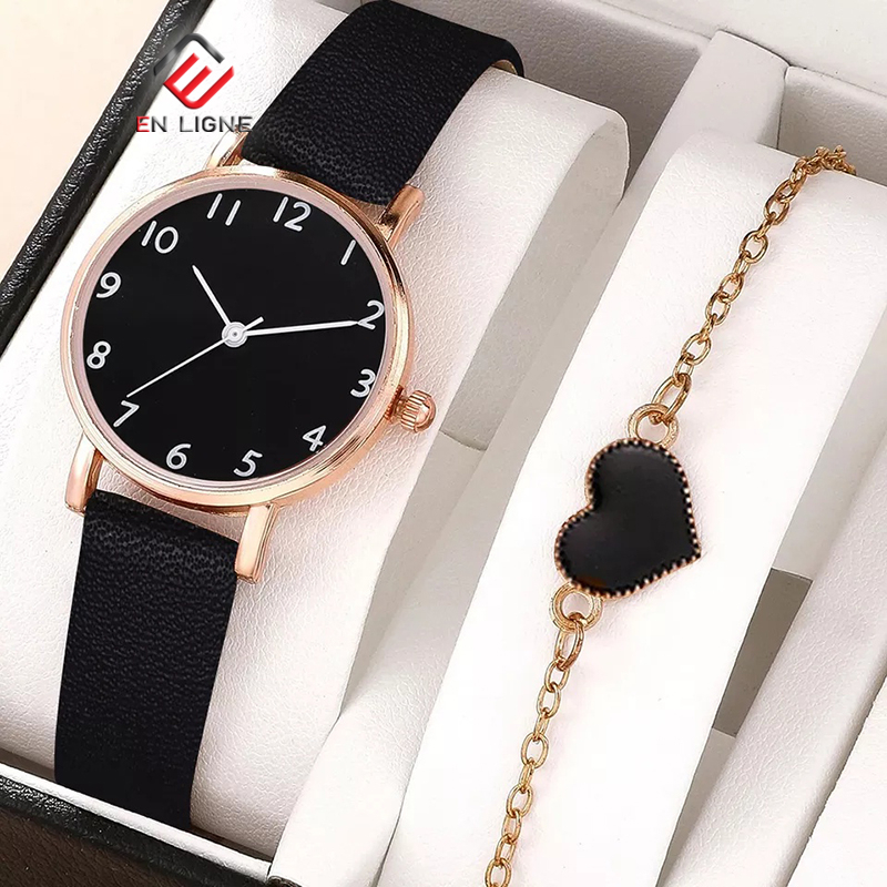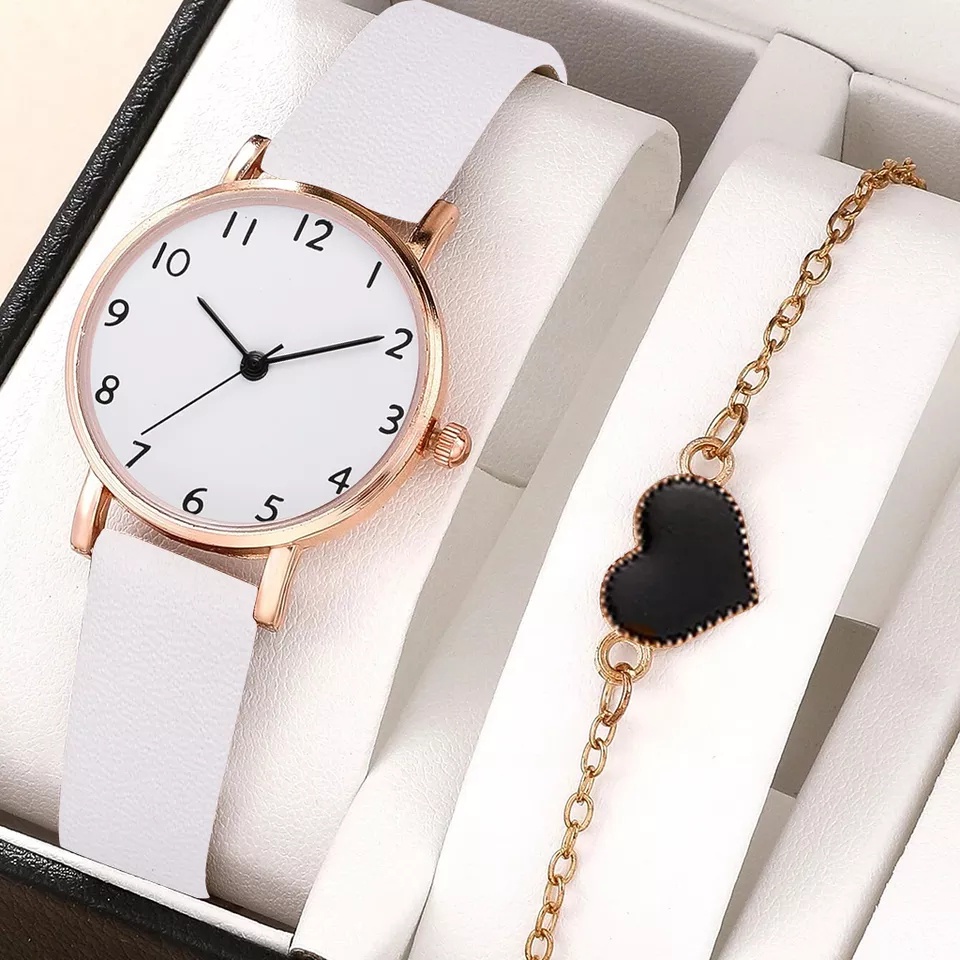EN LIGNE EL540SET - JAM TANGAN FASHION WANITA MODEL BULAT TALI KULIT SET DENGAN GELANG DAN BOX