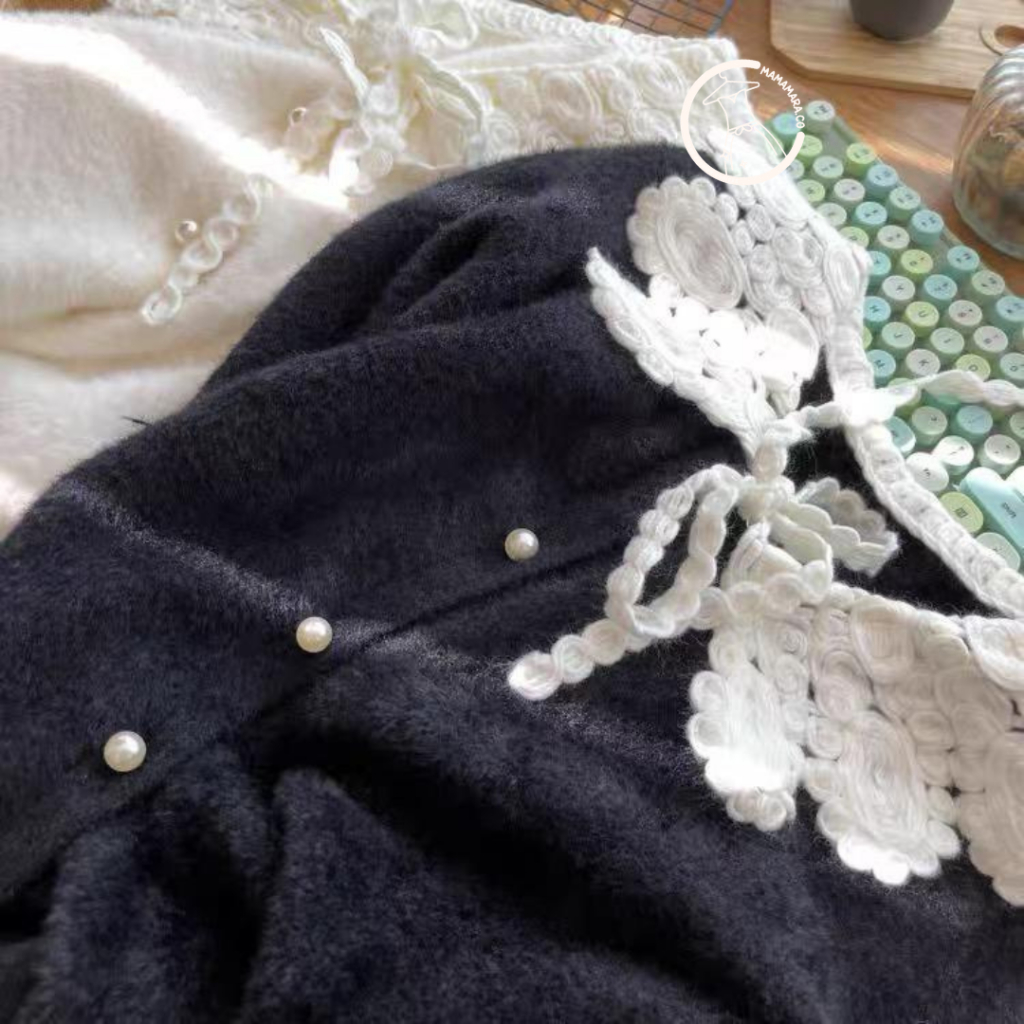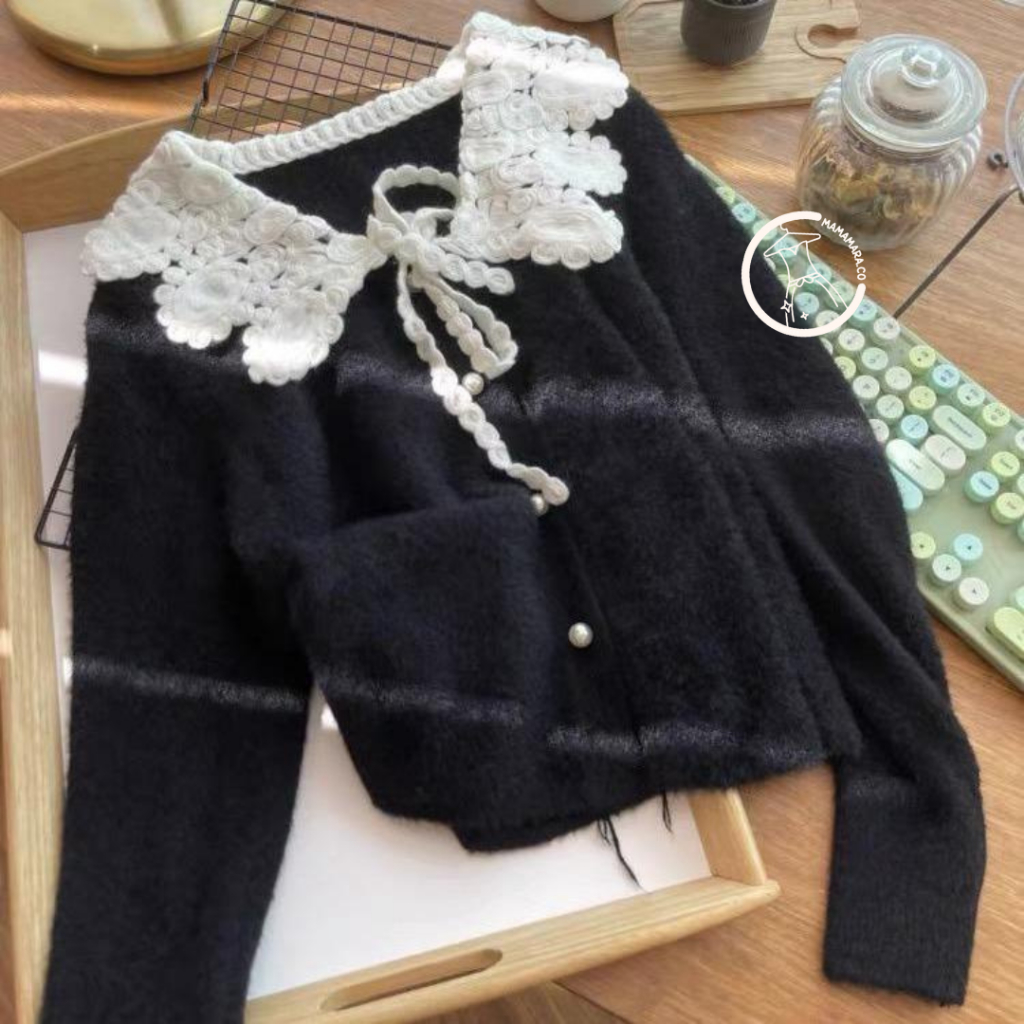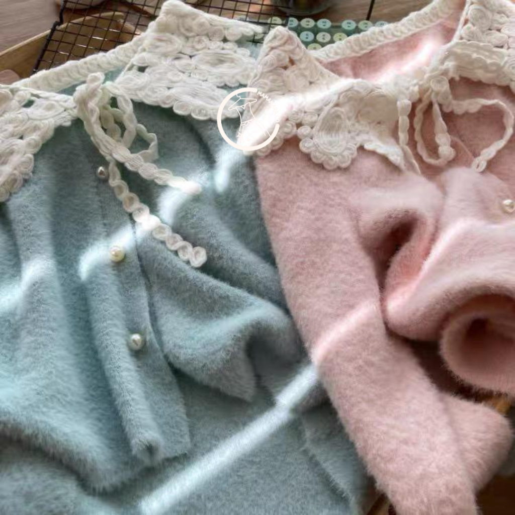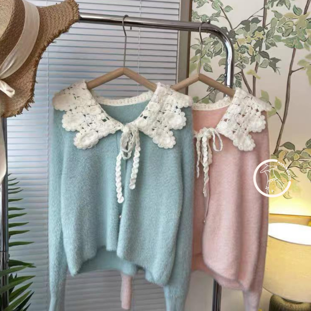 MAMAMARA - CARDIGAN RAJUT KERAH LACE BULU HALUS ATASAN WANITA LENGAN PANJANG LEMBUT FUZZY