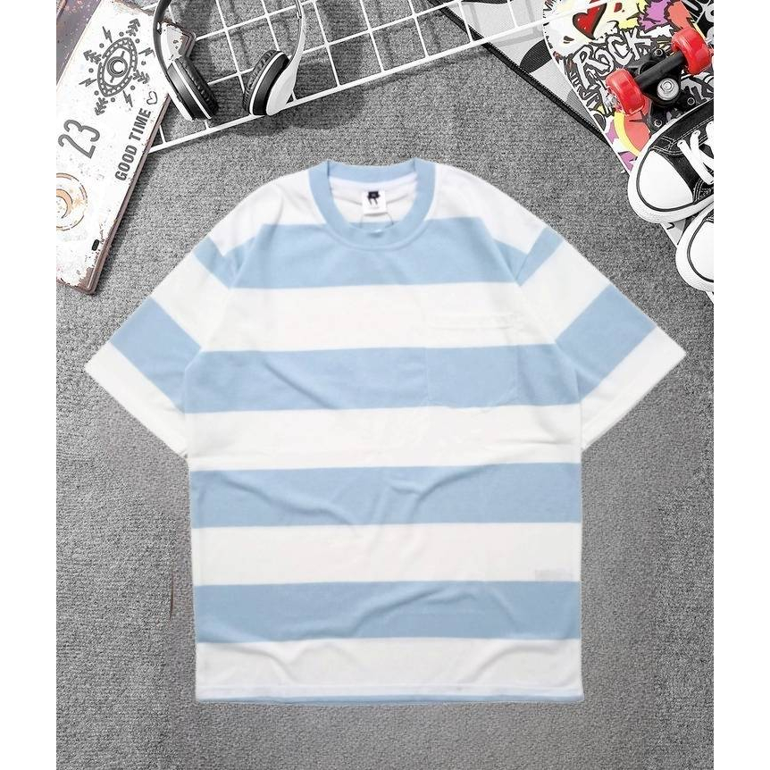 T SHIRT | SALUR | BAJU - STRIPED - KAOS OVERSIZE TERLARIS - COMBED 24S - BLUE SKY