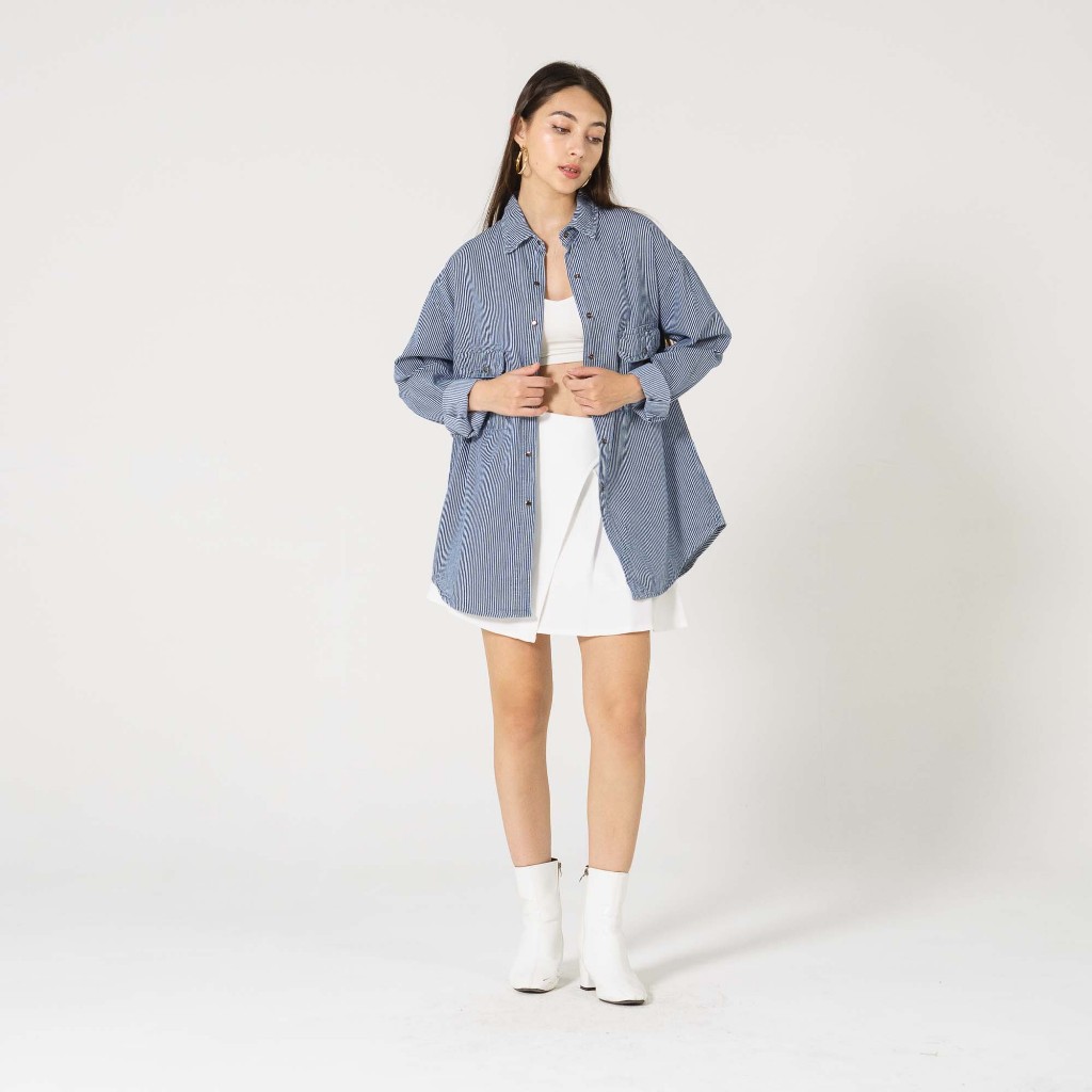 THIS IS APRIL X SYIFA HADJU KEMEJA WANITA AERI SHIRT STRIPE BLUE DENIM - 187973