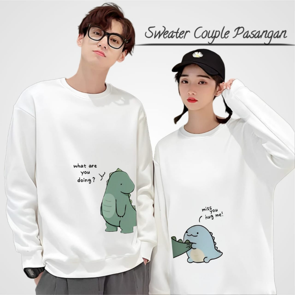 BAJU KAOS COUPLE PASANGAN PACAR DINO LENGAN PANJANG DISTRO MODEL SWEATER TERLARIS VIRAL KEKINIAN