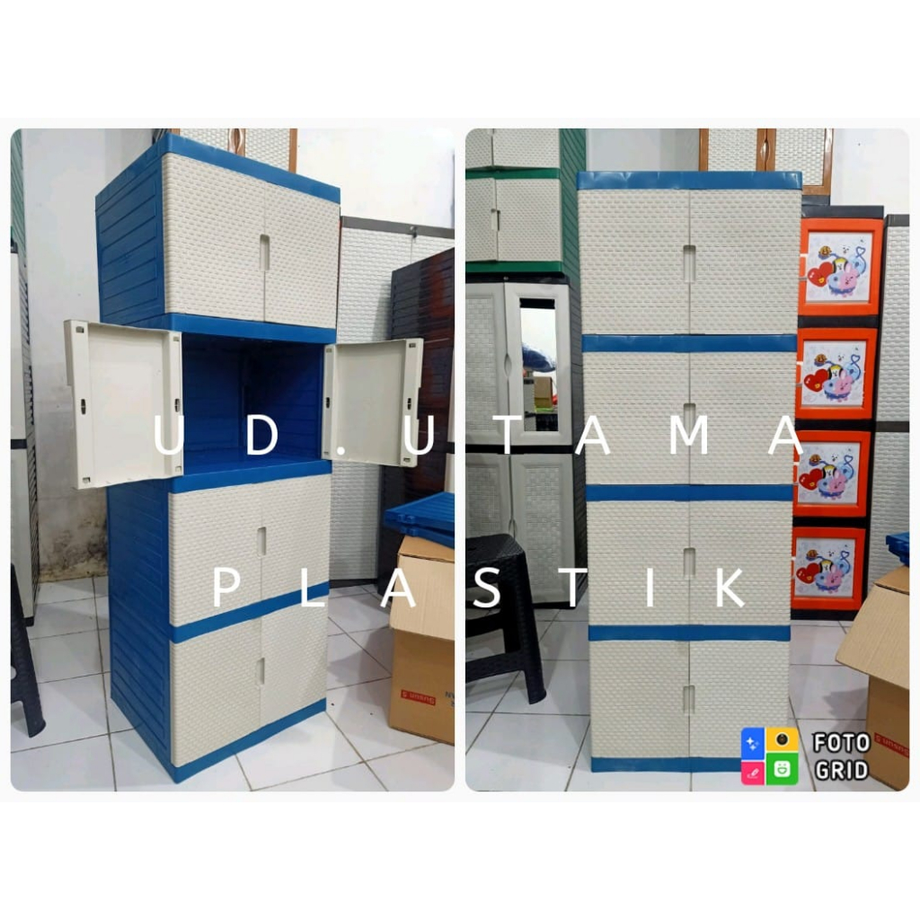 Lemari plastik / lemari pakaian plastik / lemari pintu susun 4 ori