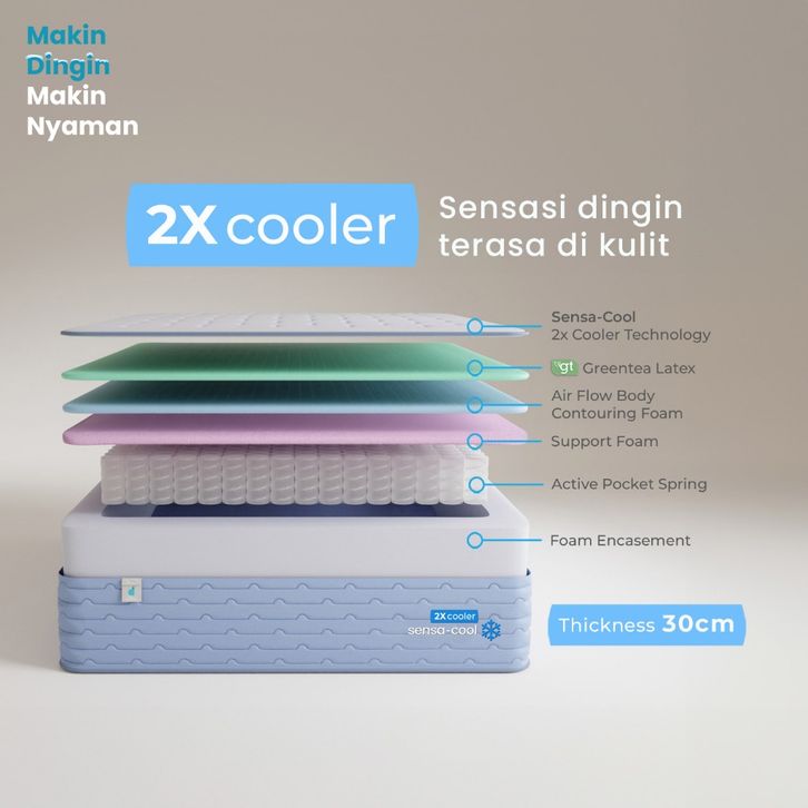 Kasur Dingin Dreambox SensaCool 30cm / 2X Cooler / Greentea Latex / Pocket GT Latex
