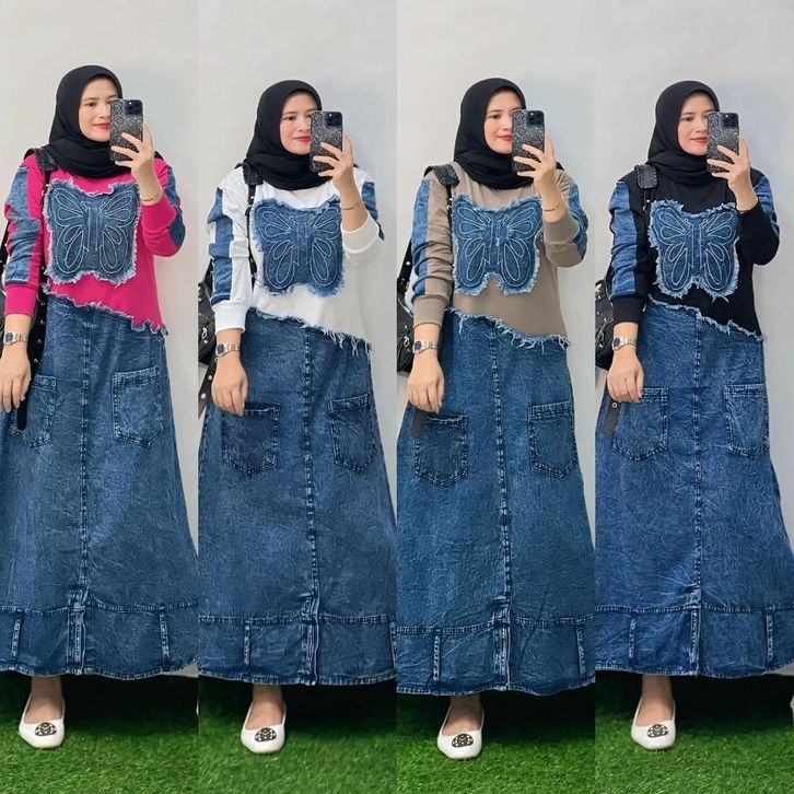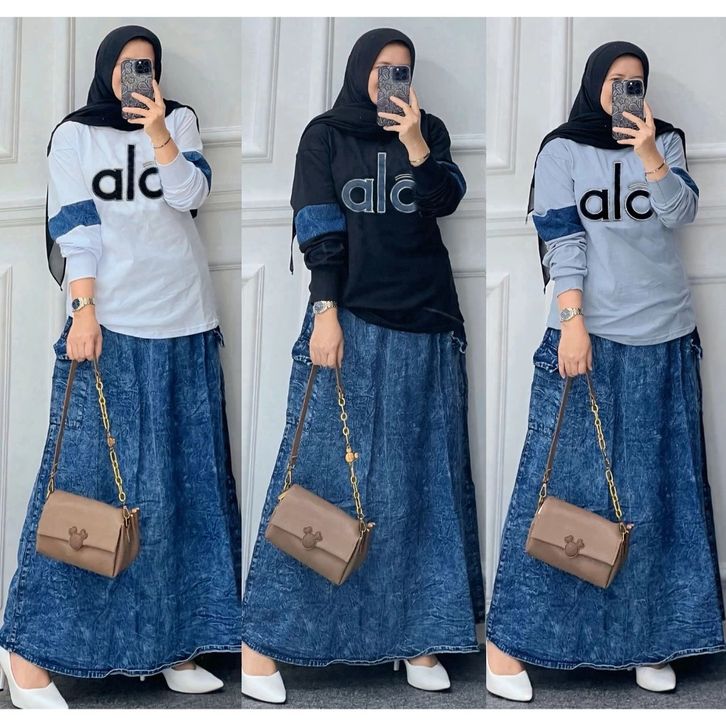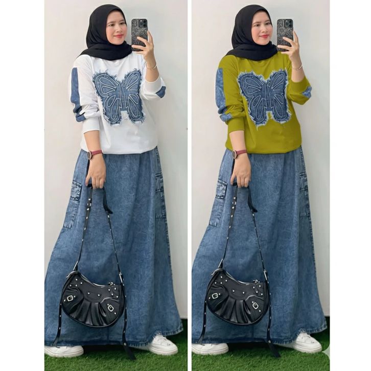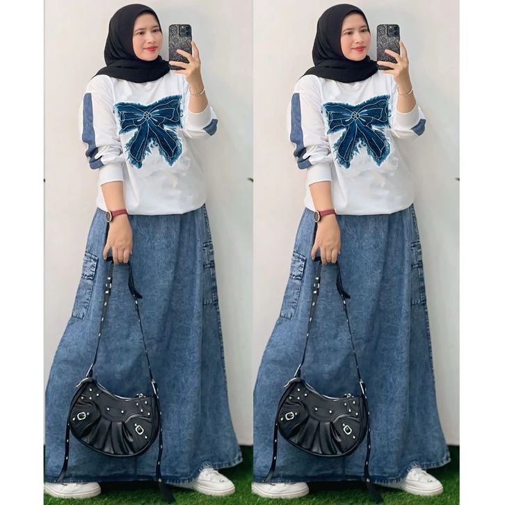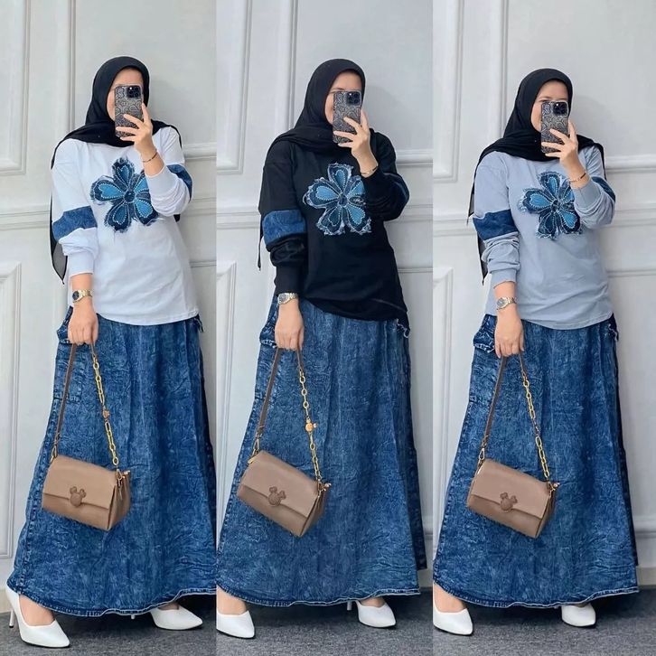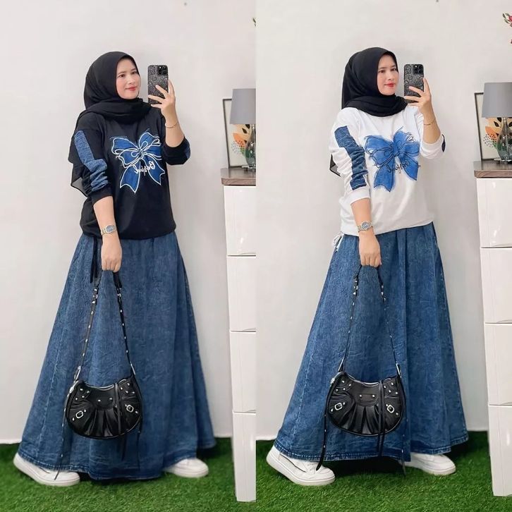 One Set Rok Jeans Mix Atasan Wanita Dewasa Setelan Wanita Kekinian Setelan Wanita Terlaris Setelan Wanita Casual