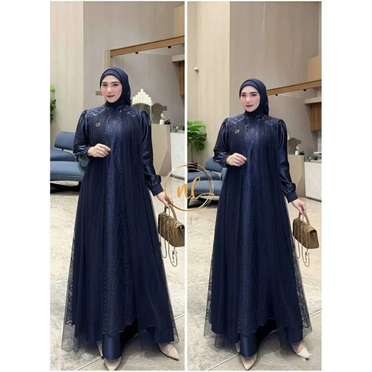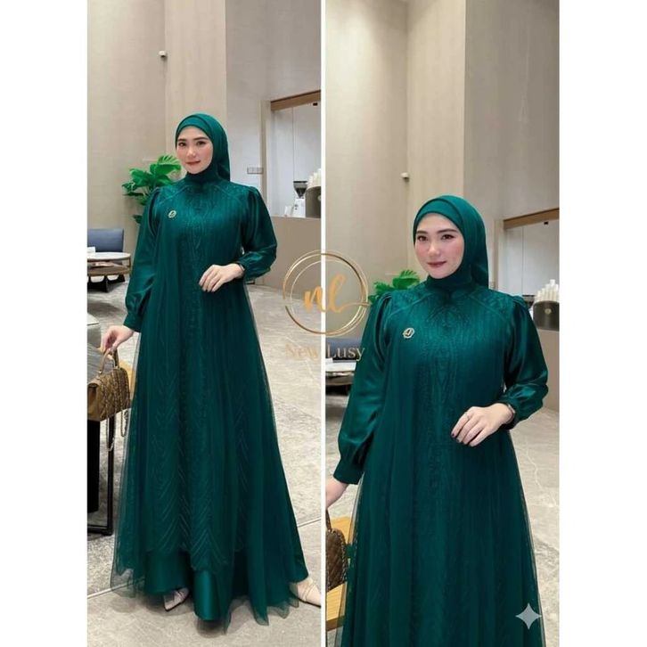 Leya Dress Tille Mix Brukat Full Puring Renda Gamis Kondangan Wanita Remaja Terbaru Gamis Lebaran 2026 Mewah Bahan Cerut