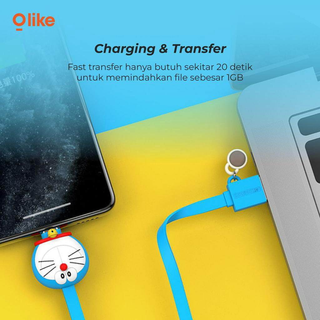 OLIKE DORAEMON KABEL DATA CHARGER USB TYPEC 3A LIGHTNING IPHONE 2.4A