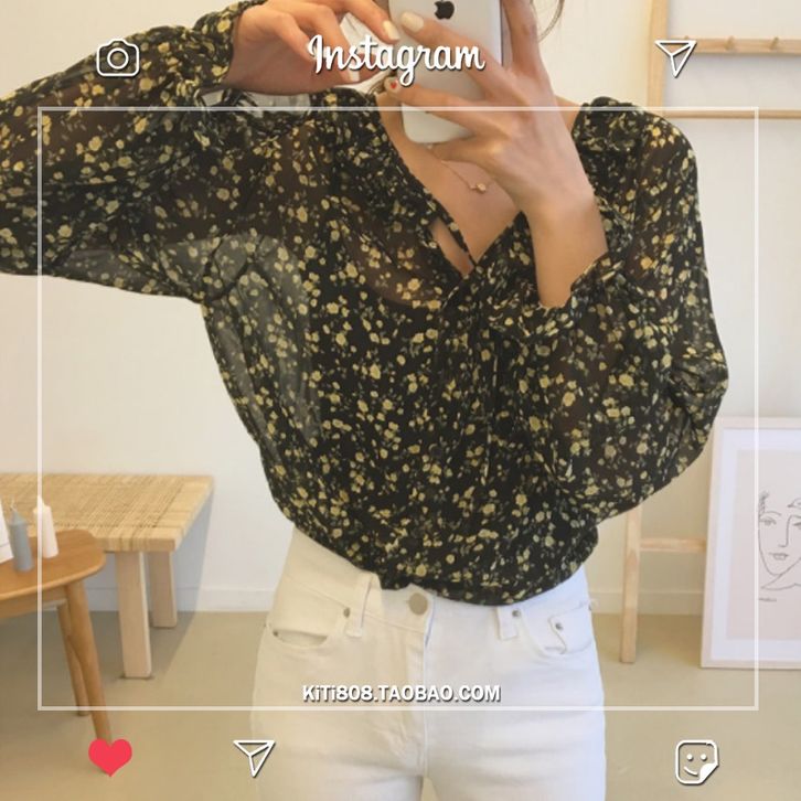 KEMEJA BLOUSE SIFON WANITA KOREA MOTIF BUNGA PROMO TERBARU MUSIM PANAS LENGAN PANJANG