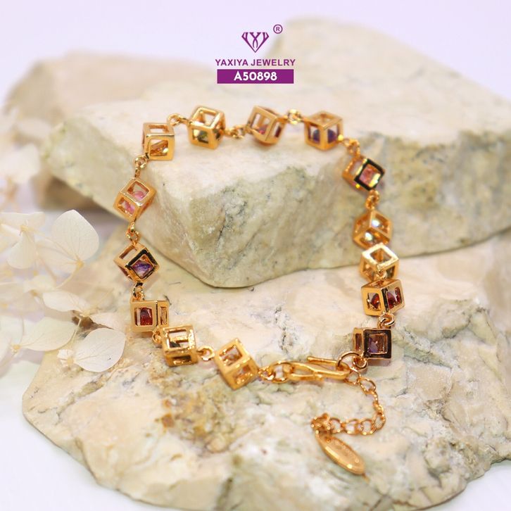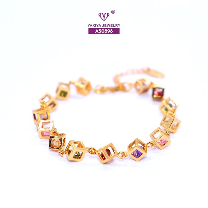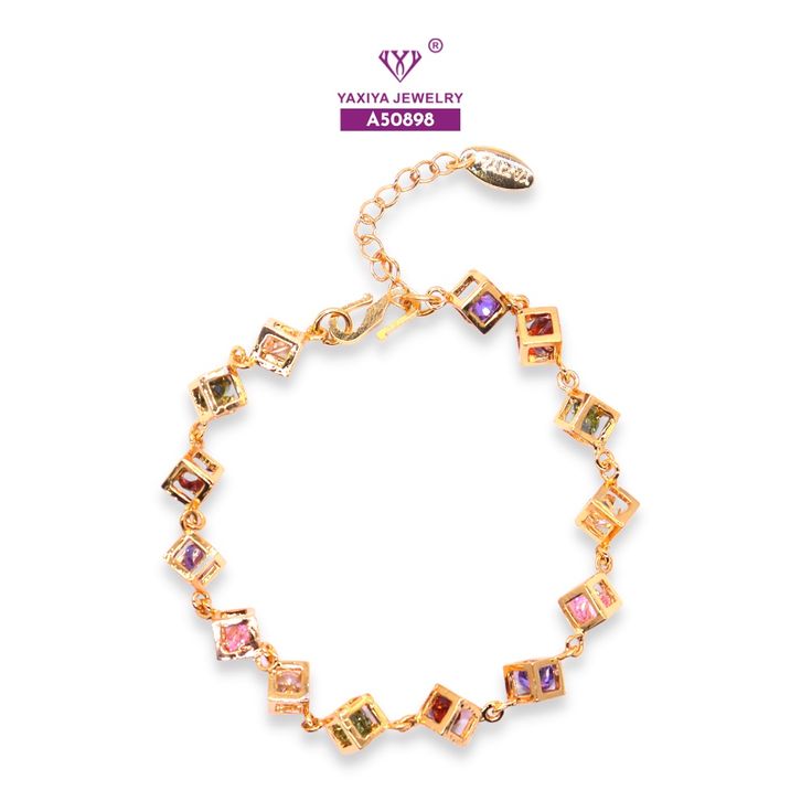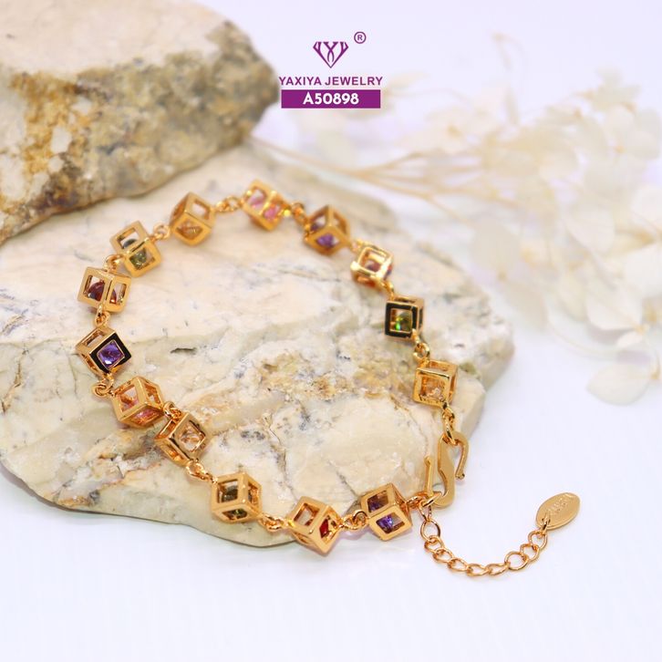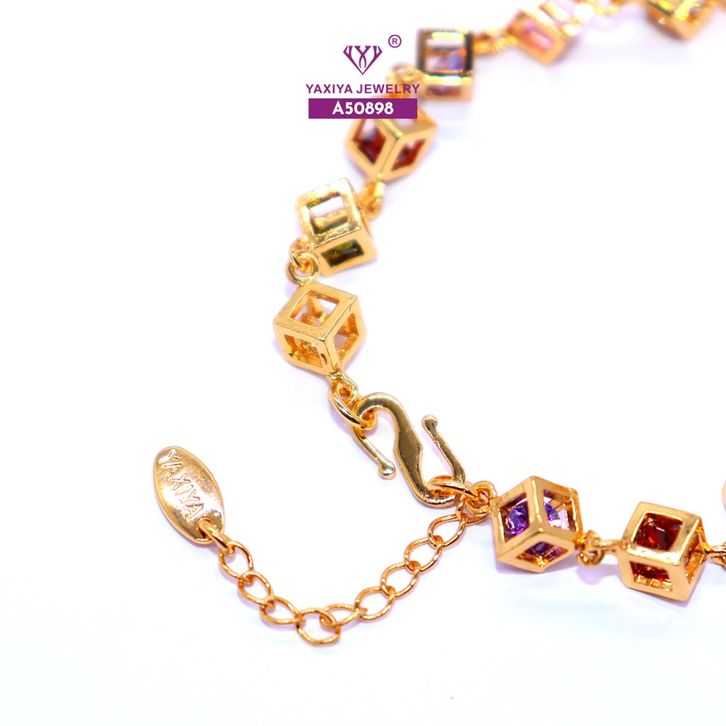 Yaxiya Gelang Jurai Kotak/Dadu Perma ta Warna Perhiasan Lapis E mas 18 K 055