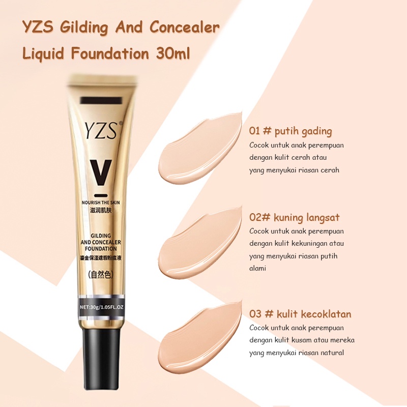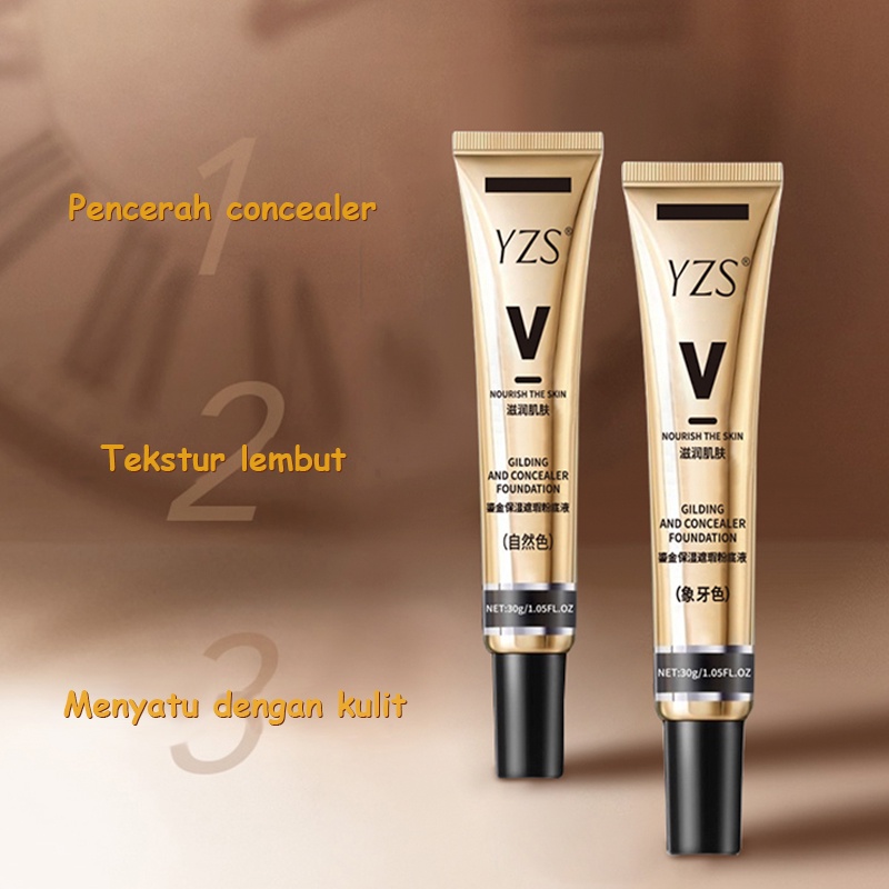 YZS GILDING AND CONCEALER LIQUID FOUNDATION 30ML LIGHTWEIGHT CONCEALING FOUNDATION MEMPERCANTIK MELEMBABKAN MENCERAHKAN