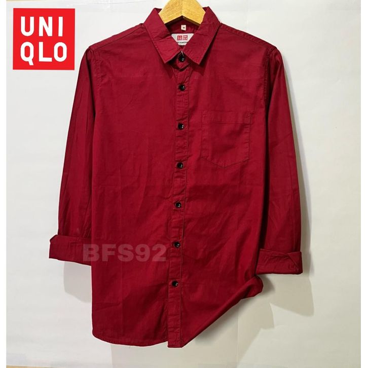 Gratis ongkir - Baju kemeja cowo - Baju kemeja pria - Baju Kemeja Lengan Panjang Polos Kemeja UNIQLO Model Kerah