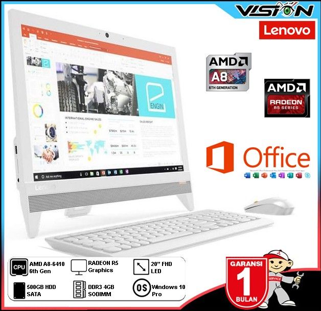 PC AIO LENOVO C20 AMD A8 - 6410 Gen6 | Radeon R5 | 4GB / SSD 256GB | 20"