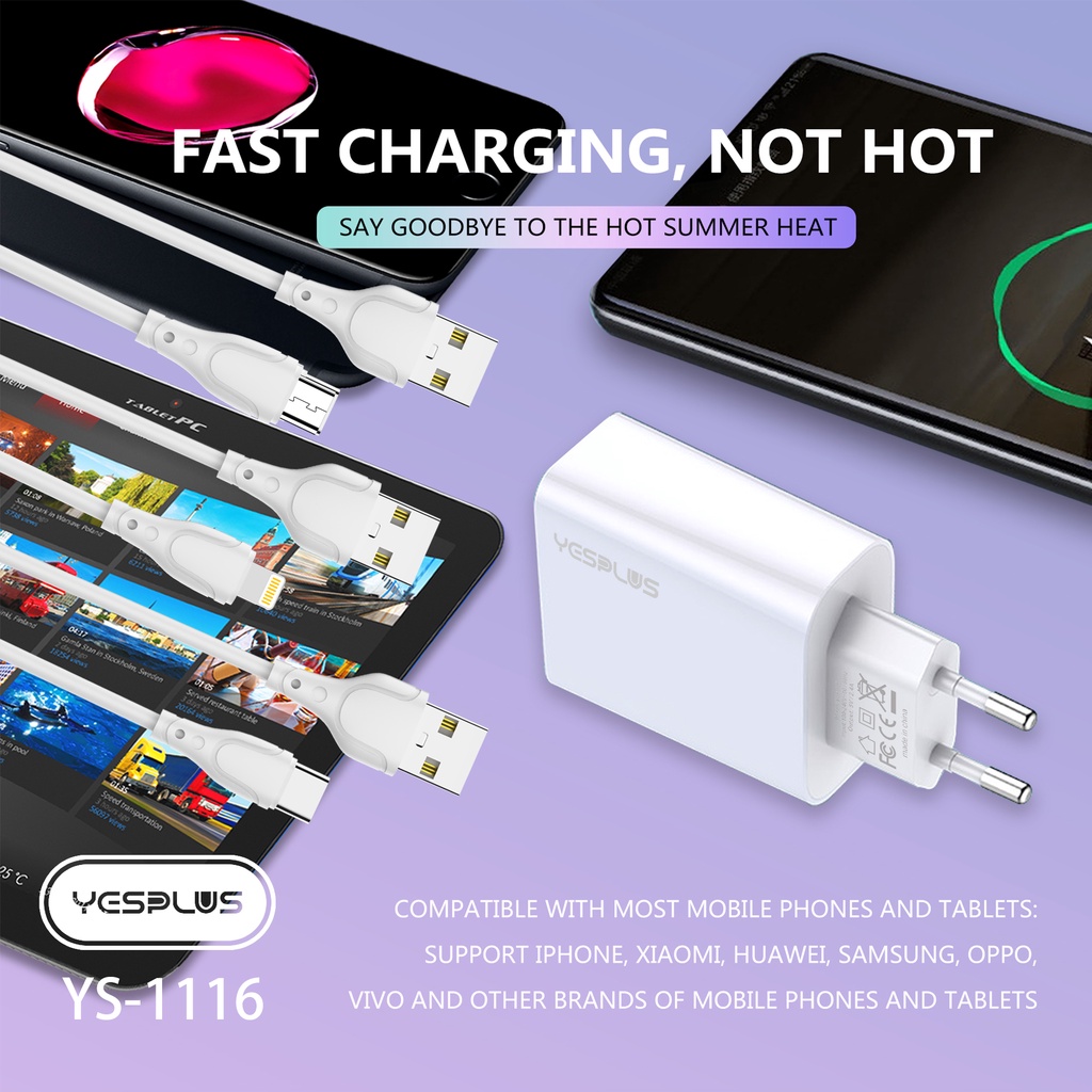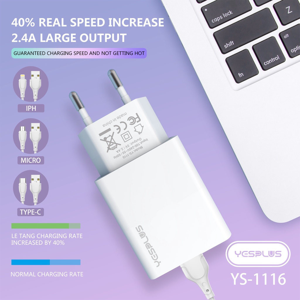 CHARGER YESPLUS YS-1116 CHARGER FAST CHARGING 2.4A SMART CHARGER & FAST CABLE