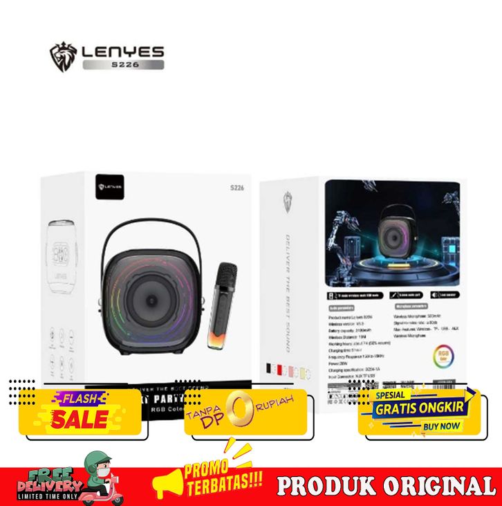 DISKON/LENYES S226 SPEAKER KARAOKE BLUETOOTH 5.3 KTV RGB LED WITH WIRELESS MICROPHONE PORTABLE