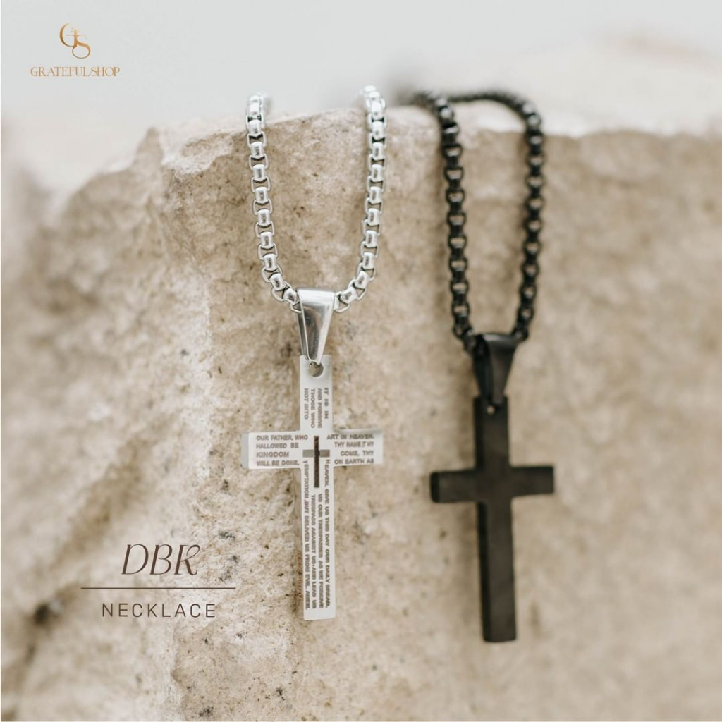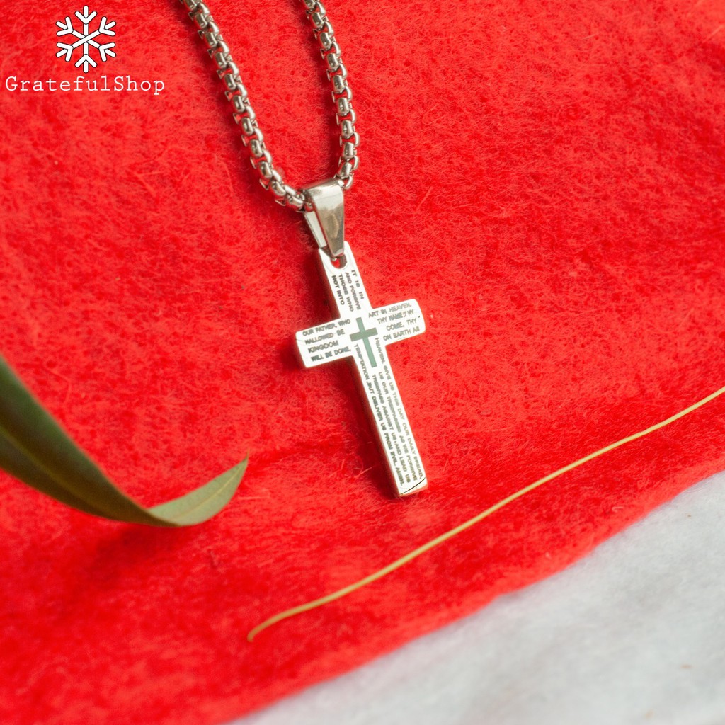 KALUNG SALIB DOA BAPA KAMI SILVER ENGLISH VERSION+STAINLESS STEEL + FREE POUCH