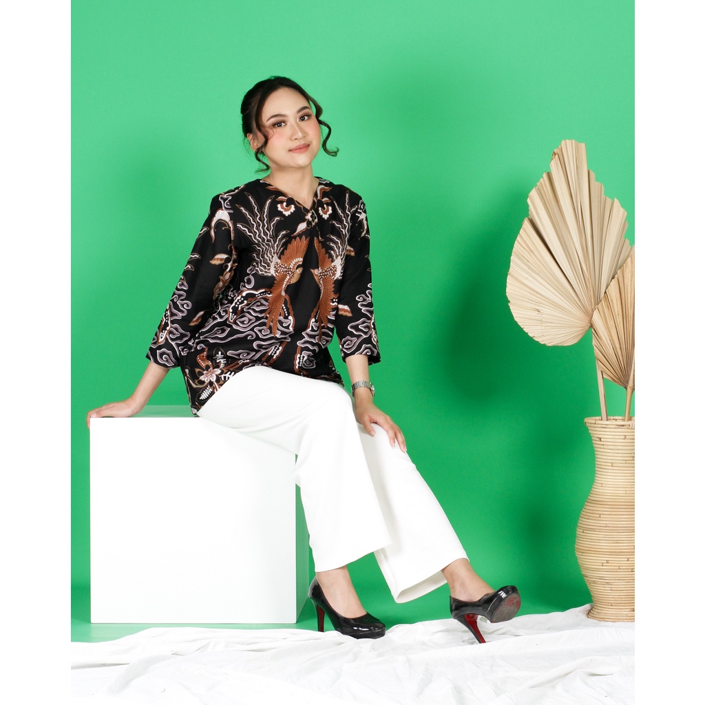 BATIK TRUSMI ATAAN BATIK WANITA BLOUSE BATIK MOTIF MEGA MENDUNG KOMBINASI TARA