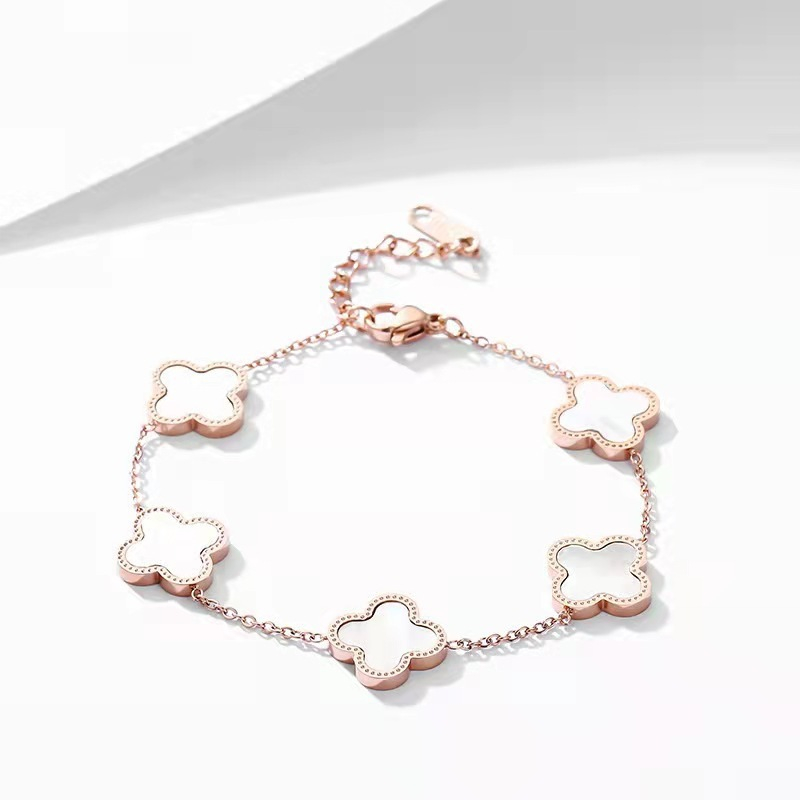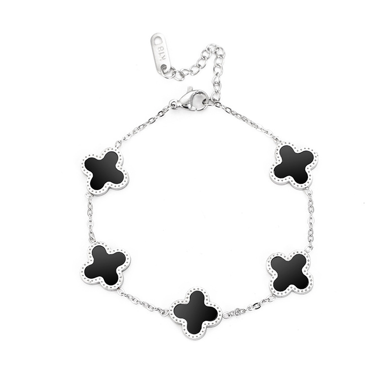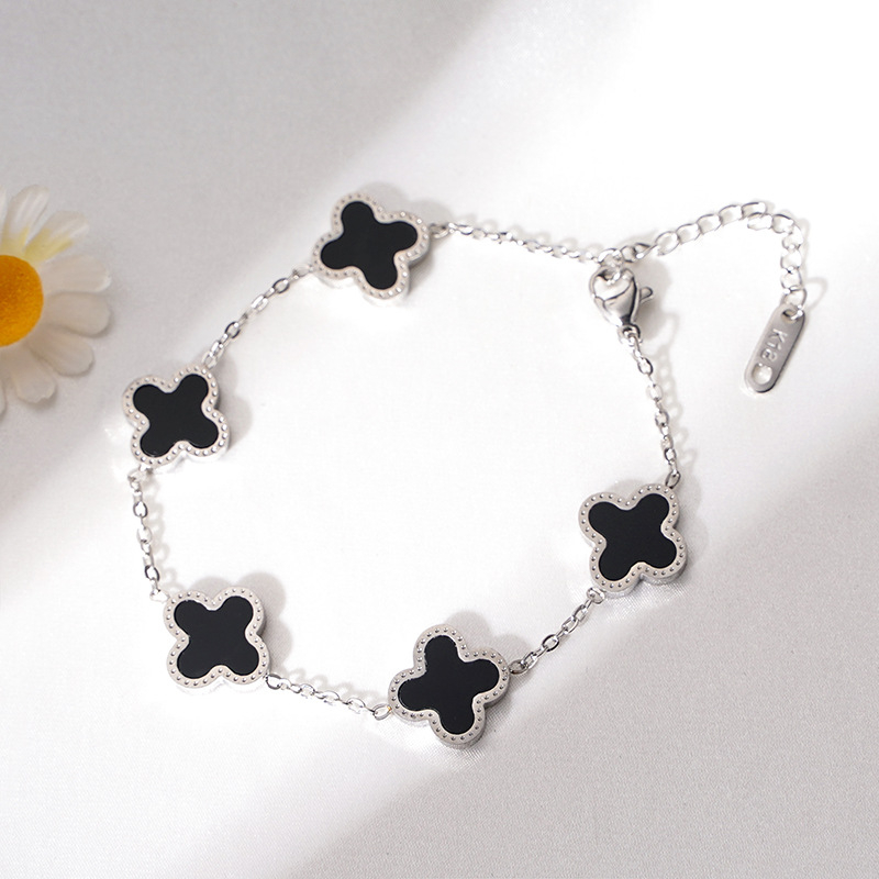 GELANG TITANIUM BUNGA CLVR 13 MM BOLAK BALIK PERHIASAN WANITA KOREA