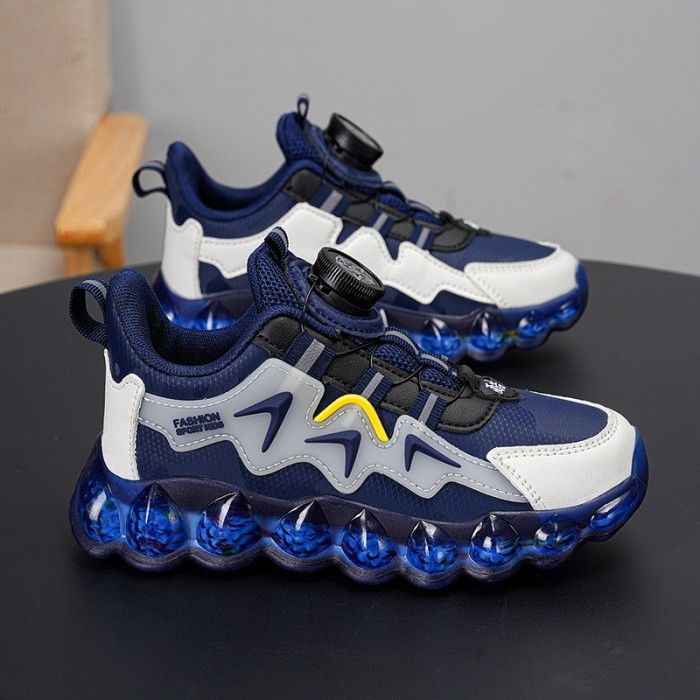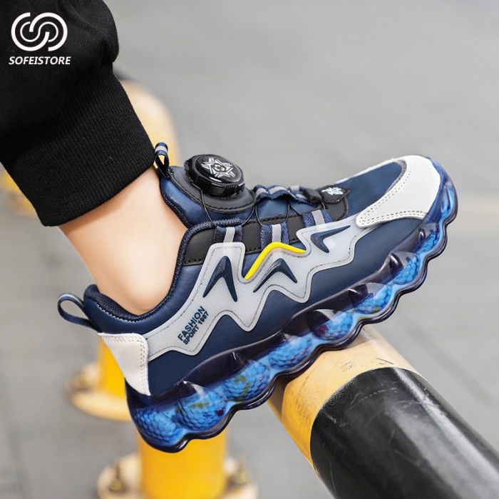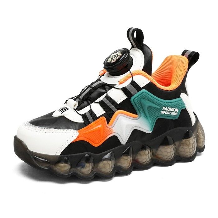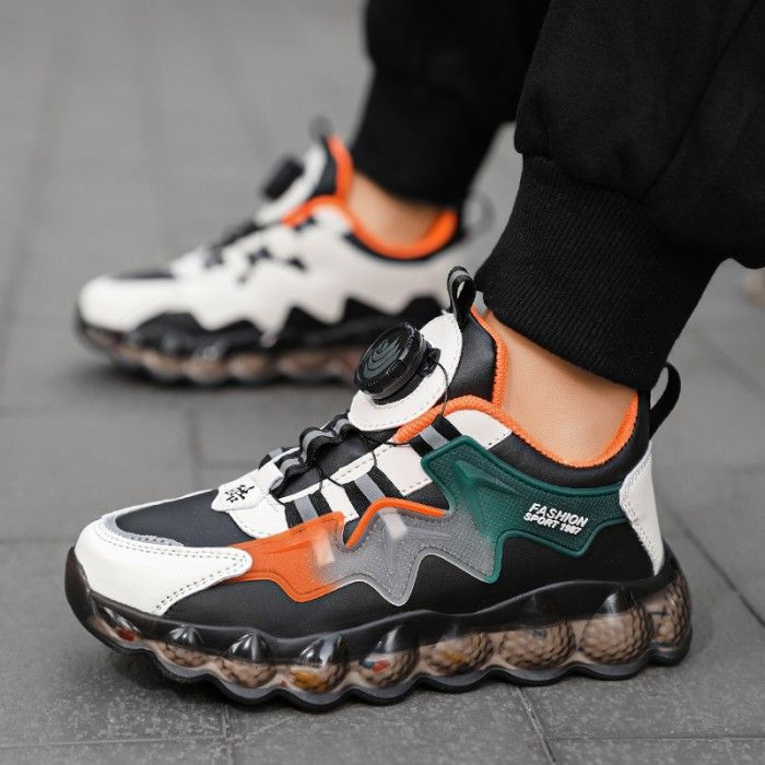 Sepatu olahraga kulit anak menengah dan besar baru dengan kancing berp - Hitam, 37