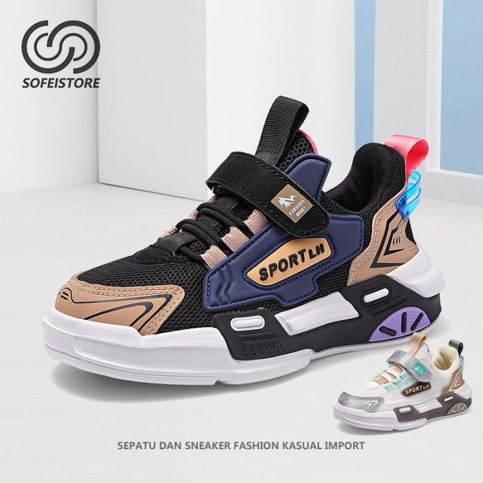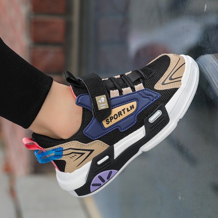 Sepatu Olahraga Anak Laki-laki Musim Gugur Baru Mesh Bernapas Non-Slip - Hitam, 28