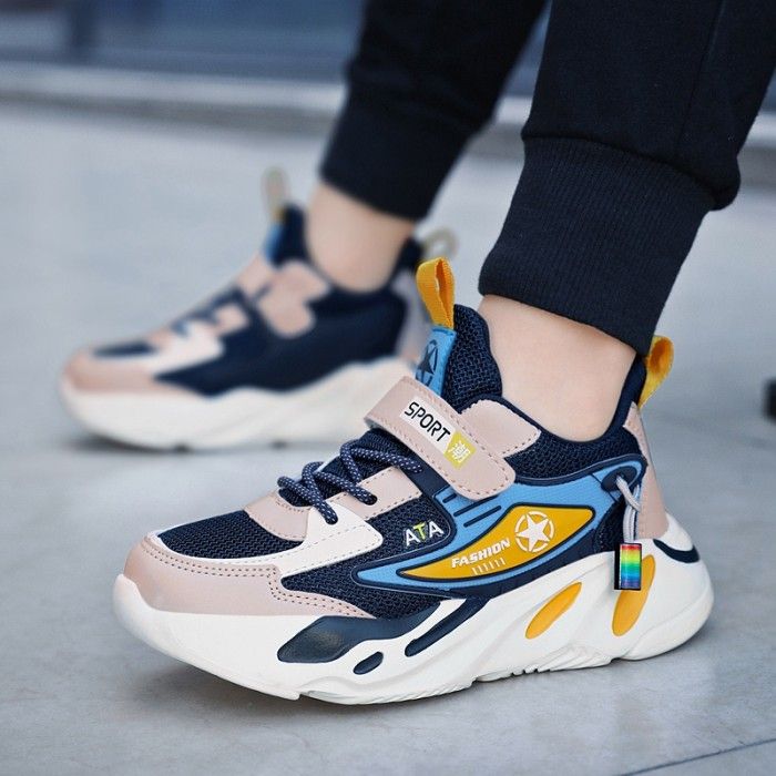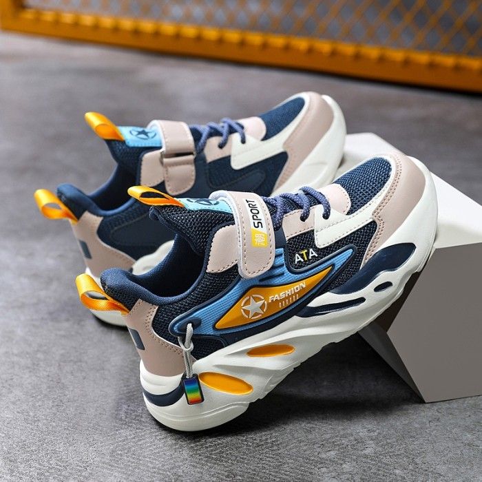 Sepatu Sneakers anak-anak baru sepatu olahraga bernapas mesh menengah - dark blue, 36