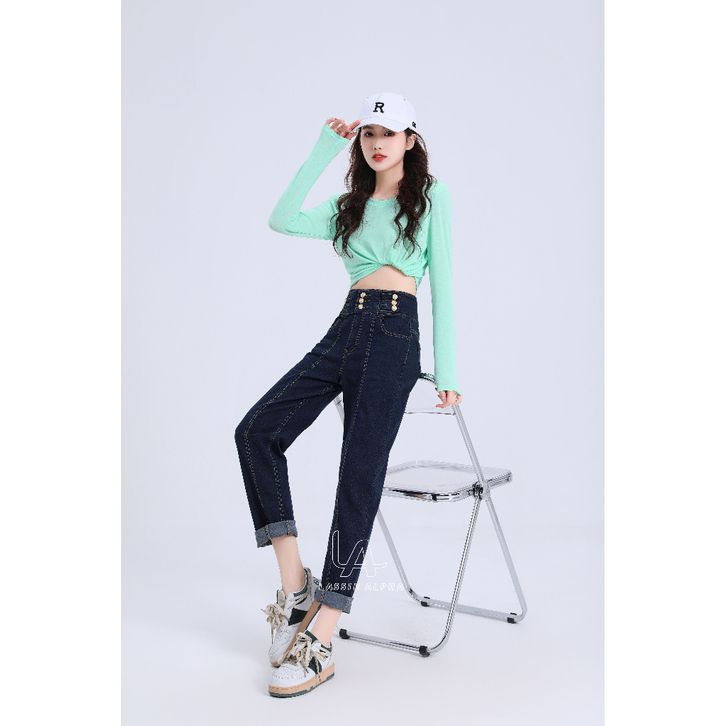 CELANA JEANS WANITA HIGHWAIST BIRU TUA KANCING EMAS MULTI-BARIS LASSIE ALPHA J45 ORIGINAL OFFICIAL STORE