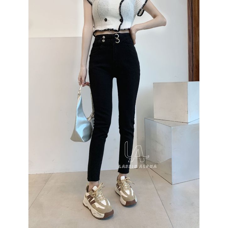 CELANA JEANS WANITA HIGHWAIST HITAM SLIM FIT JEANS IMPOR GAYA KOREA STYLE ORIGINAL OFFICIAL STORE
