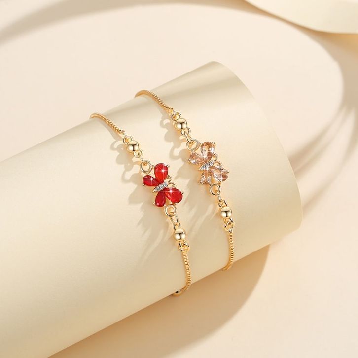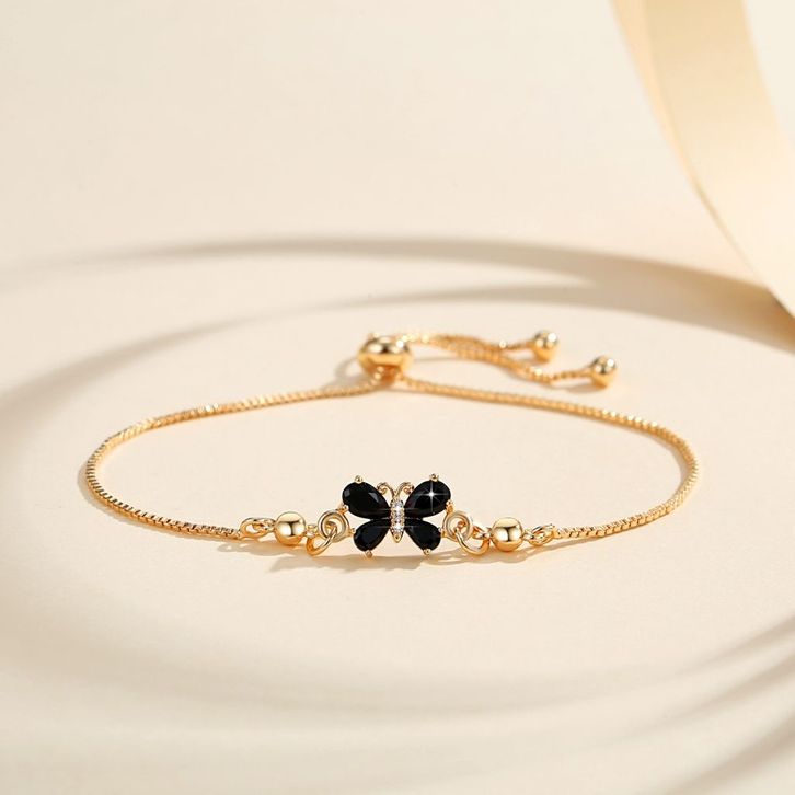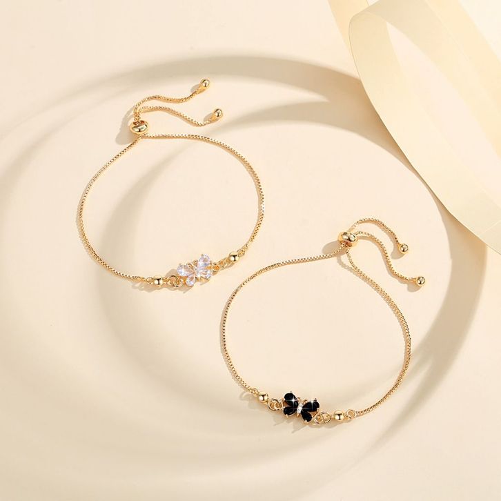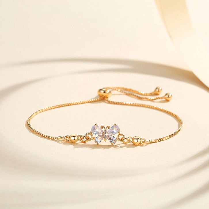 Gelang Serut Wanita Anti Karat Zirkon Kupu -Kupu Gelang Aksesoris Perhiasan Wanita Murah Adjustable LM183