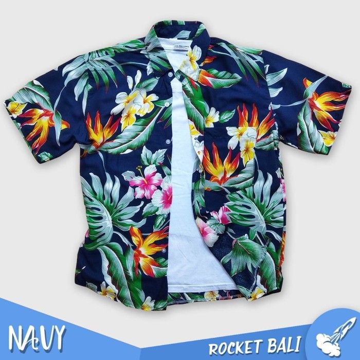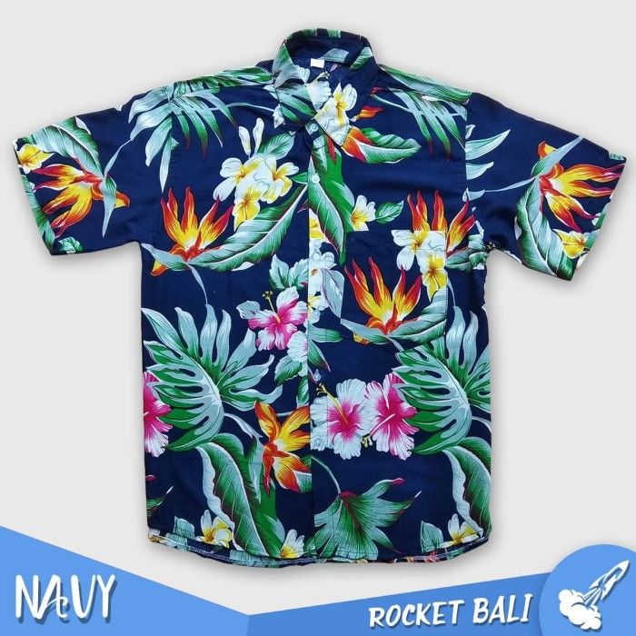 Kemeja Hawai - Baju Pantai Pria - Kemeja Bunga - Baju Pantai Kemeja - Hijau muda