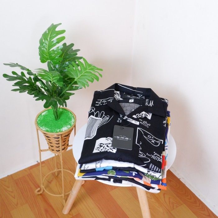 Kemeja Pantai Pria Baju Hawai Rayon Printing Full Print Motif Abstrak - Z09 L