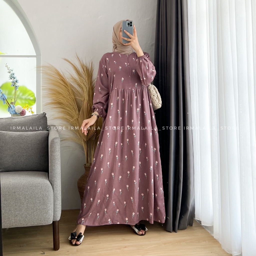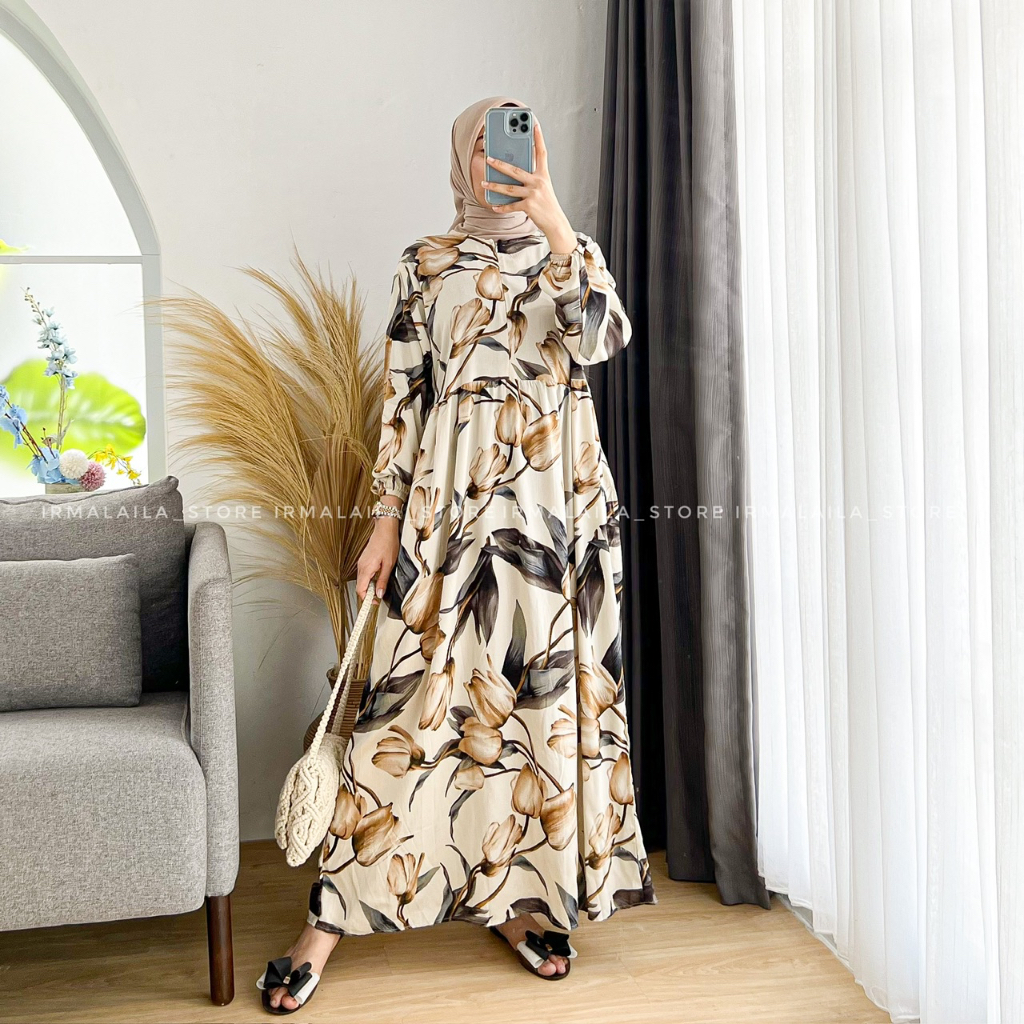 FLORA MIDI DRESS WANITA DEWASA RAYON MOTIF PREMIUM