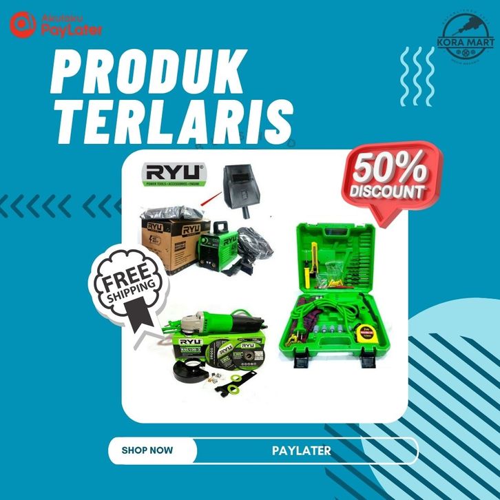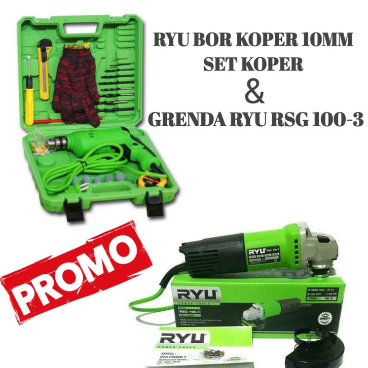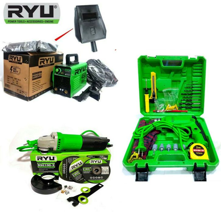 Paket Hemat 3 Item Mesin Las RYU 120A Trafo Travo + Gerinda Tangan RSG100-2 4 inch + Bor Listrik Ryu 10mm Original