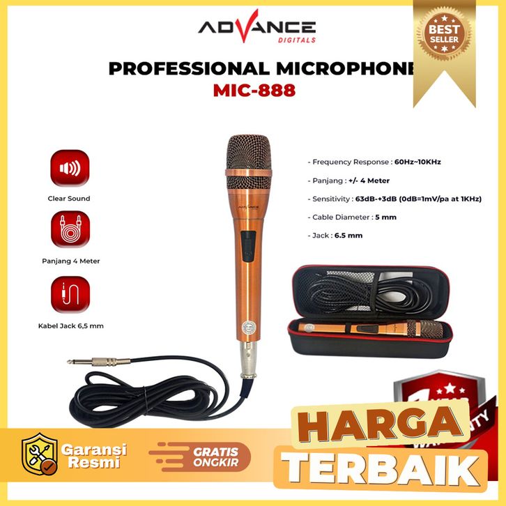 [Mall] ADVANCE MIC-888 SINGLE PROFESIONAL DYNAMIC MICROPHONE MIC KABEL MICROPHONE PREMIUM