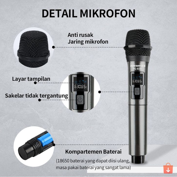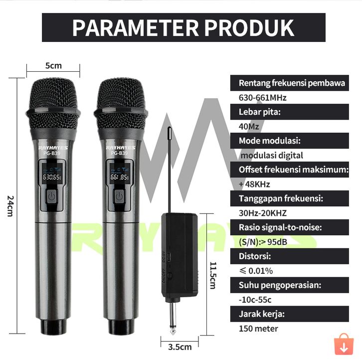 [Mall] RAYHAYES MIKROFON NIRKABEL PROFESIONAL UHF MIKROFON DINAMIS GENGGAM ISI ULANG BLUETOOTH UNTUK KARAOKE