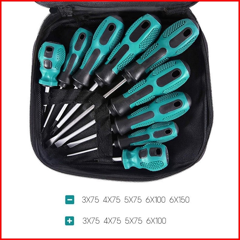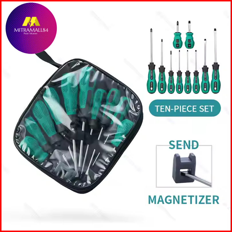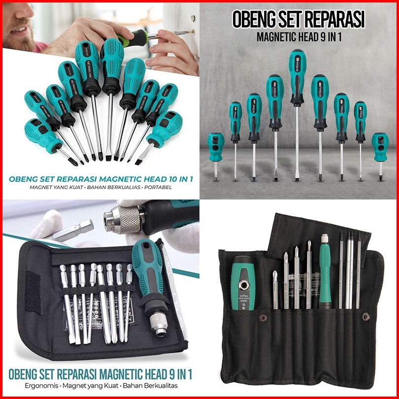 Obeng Set Lengkap Kepala Magnet Untuk Perbaikan 10in1 - Green