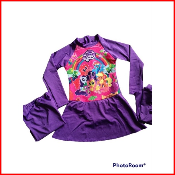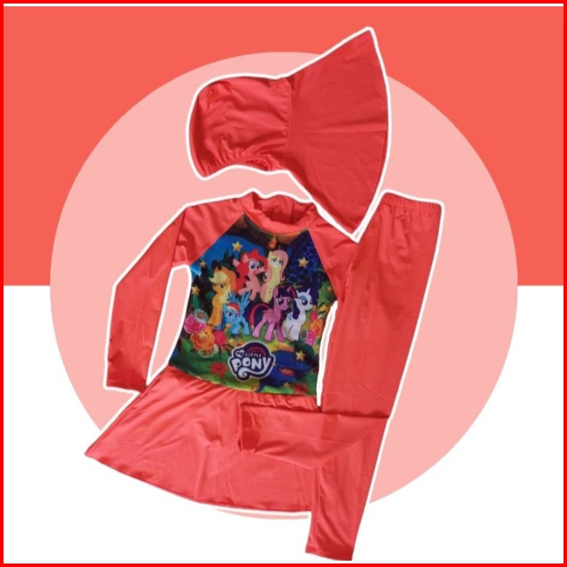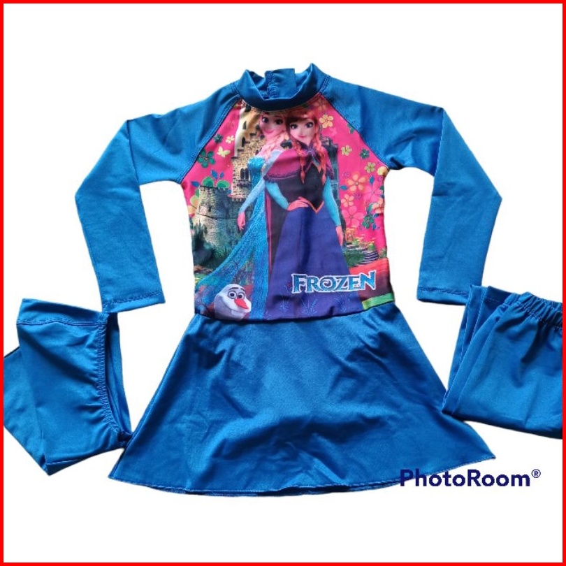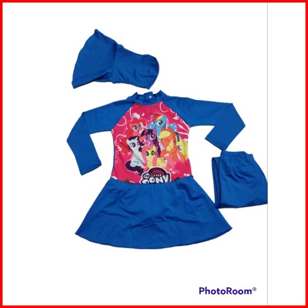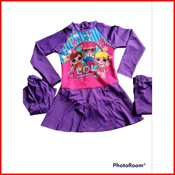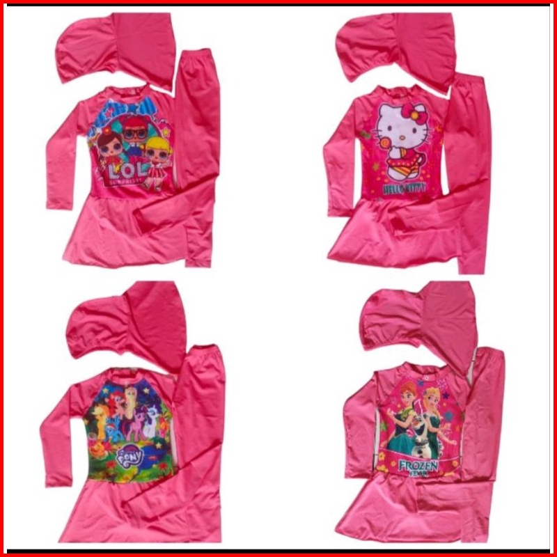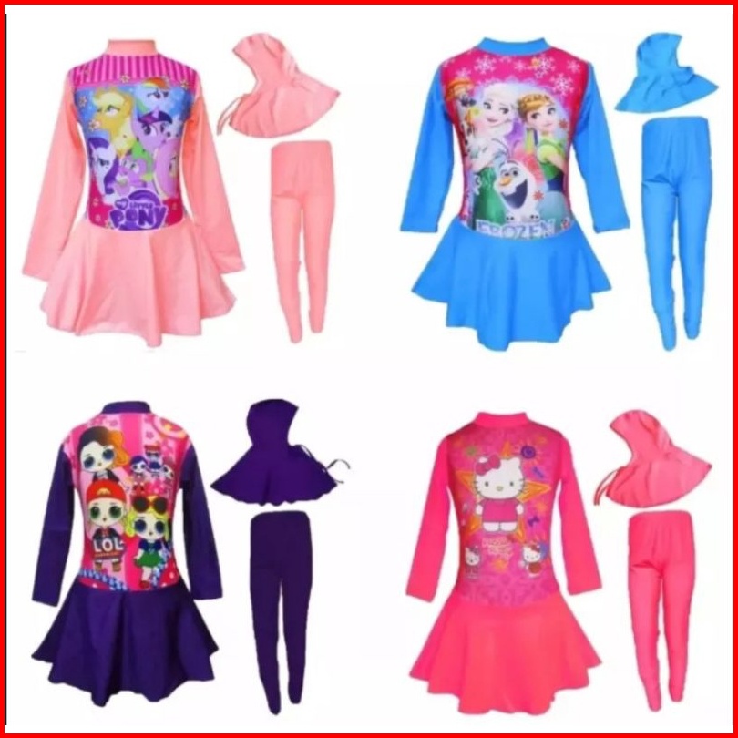 Baju Renang Muslim Anak Perempuan Usia 1-12 Tahun Diving Kerudung Karakter Anak Cewek