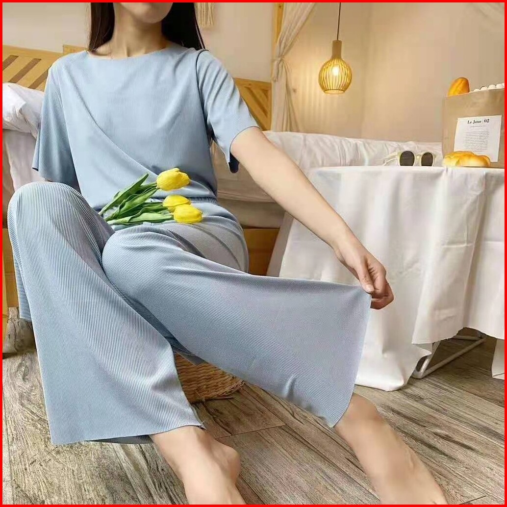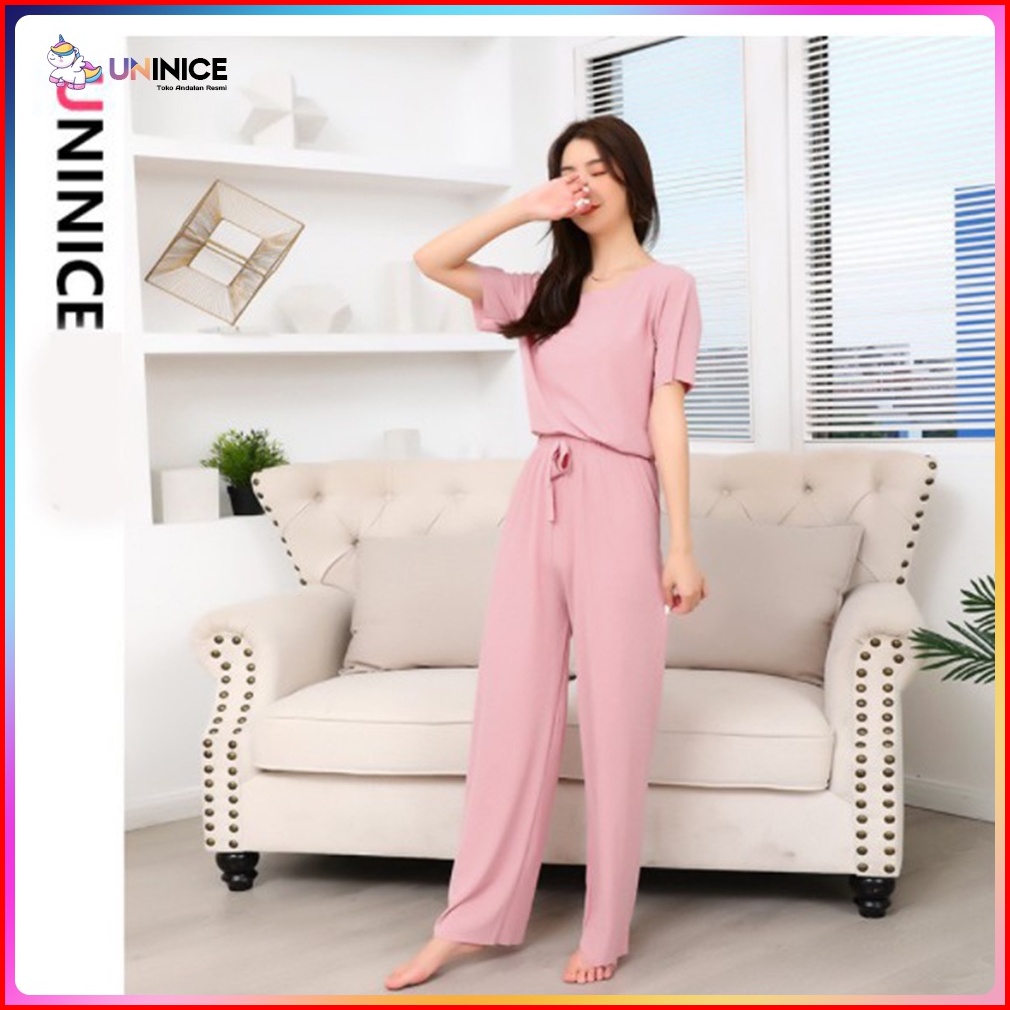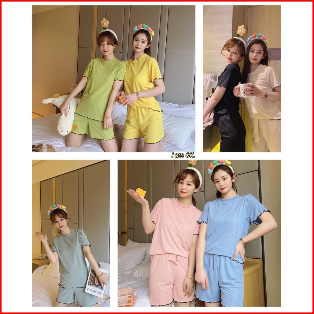 Uninice Pengiriman Rahasia Set Piyama Wanita Polos Setelan Lengan Pendek Celana Dast Warna Solid Satu Ukuran Piyama Set