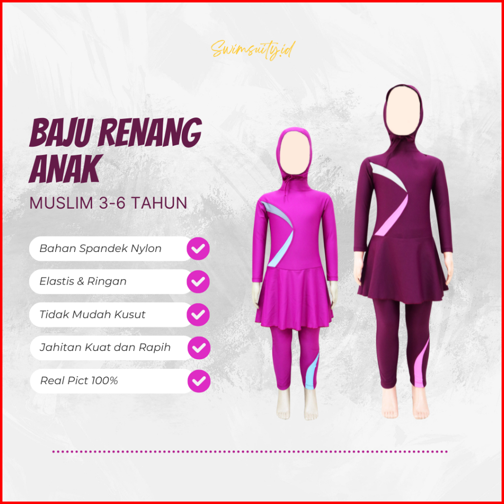 Baju Renang Anak Perempuan Muslim Polos Terbaru Usia 3-6 Tahun