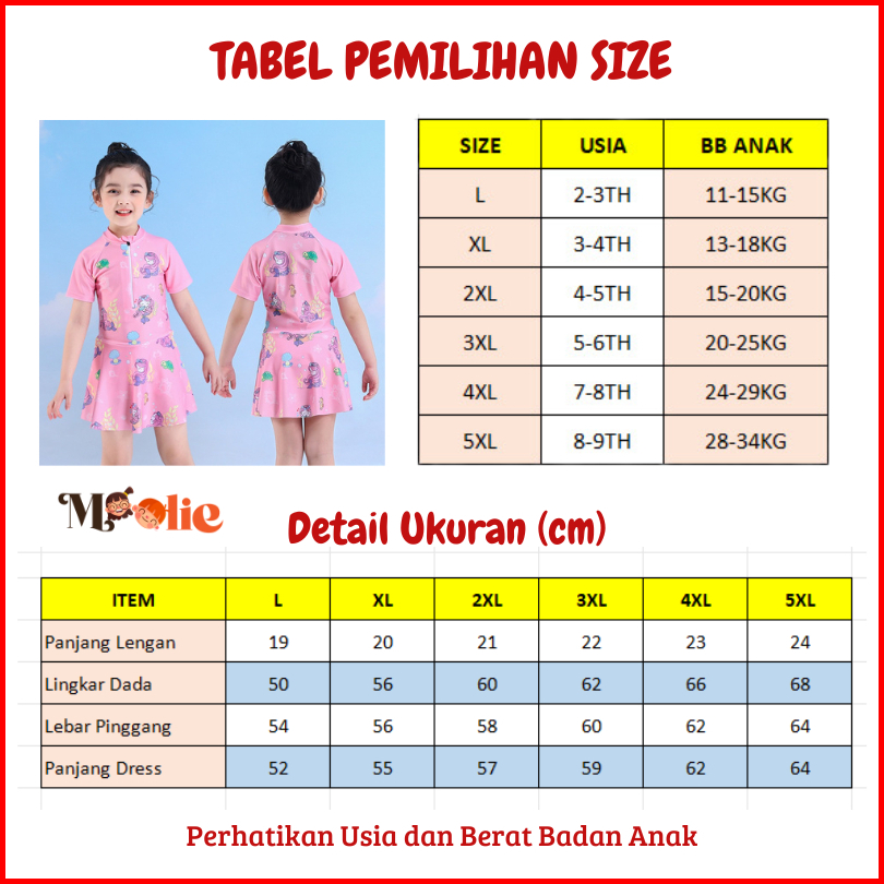 Mo33 Moolie Baju Renang Anak Perempuan Baju Renang Anak Perempuan Swimsuit Baju Renang Dress Anak