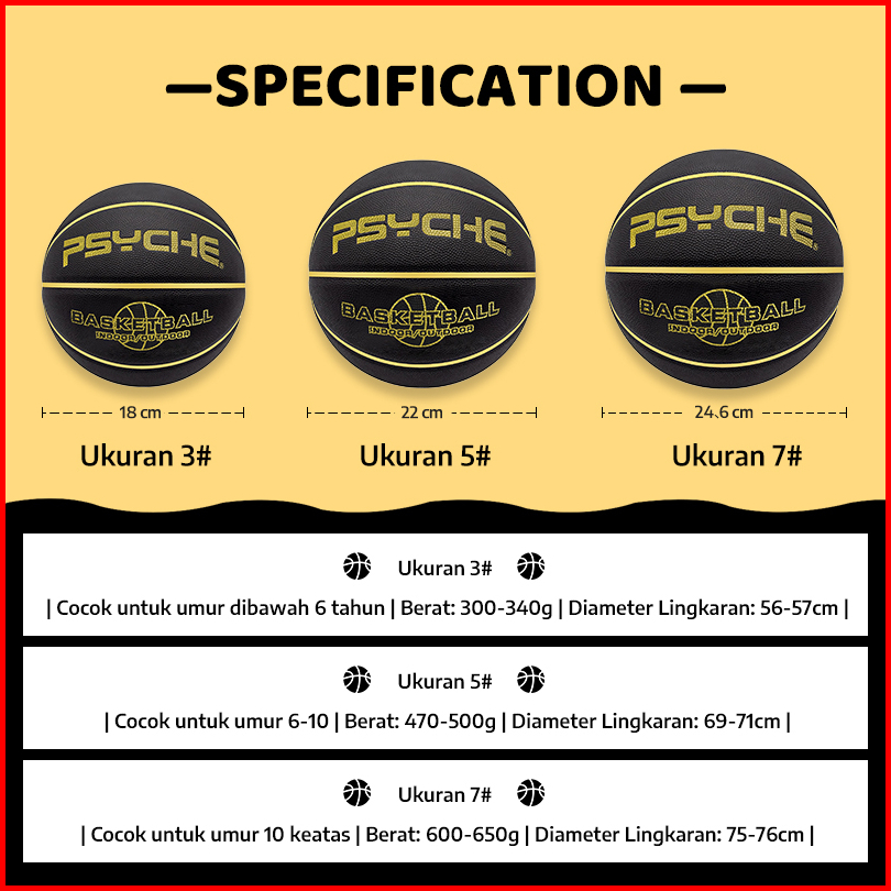 Psyche Bola Basket Anak Original Rubber Size 7 Size 5 Size 3