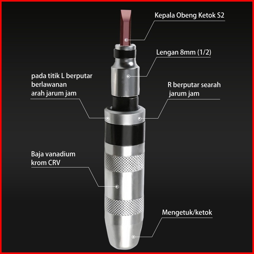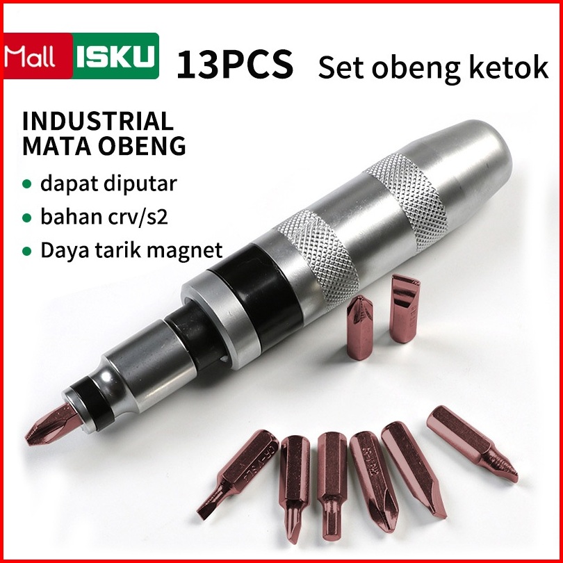 Isku Obeng Ketok Set 13pcs Obeng Set Putar Set S2 Drill Bit Bahan Non-karat Impact Screwdriver Set Box Besi Obeng Ketok