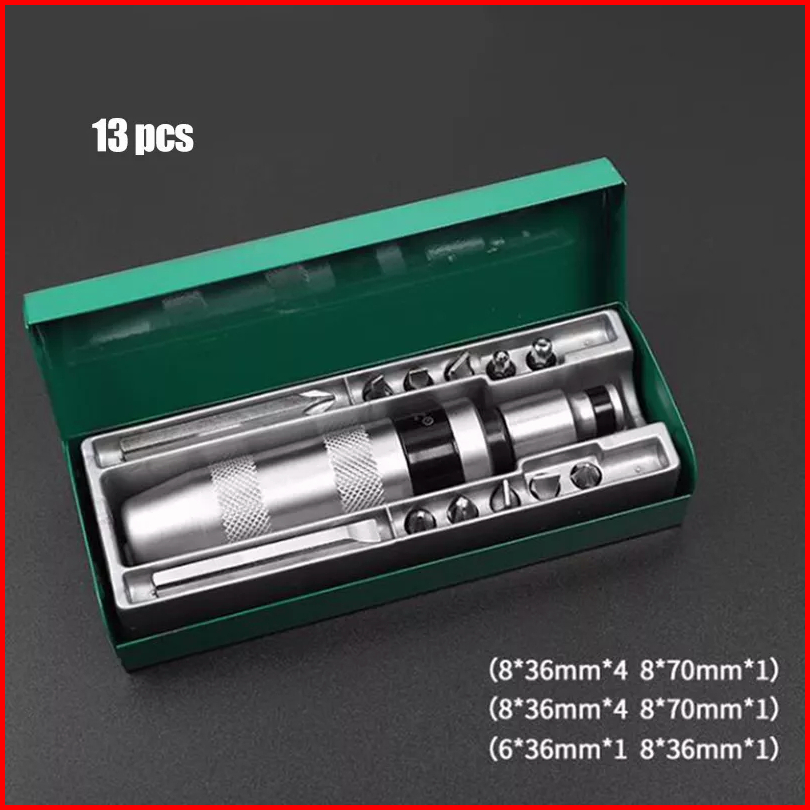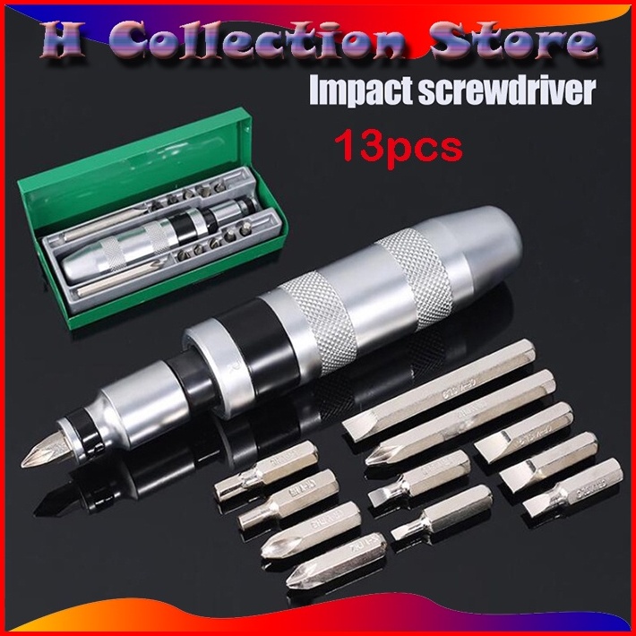 12 13pcs Obeng Ketok Set Getok Putar Set Impact S2 Drill Bit Driver Non-karat Impact Screwdriver Set Box Besi Vessel